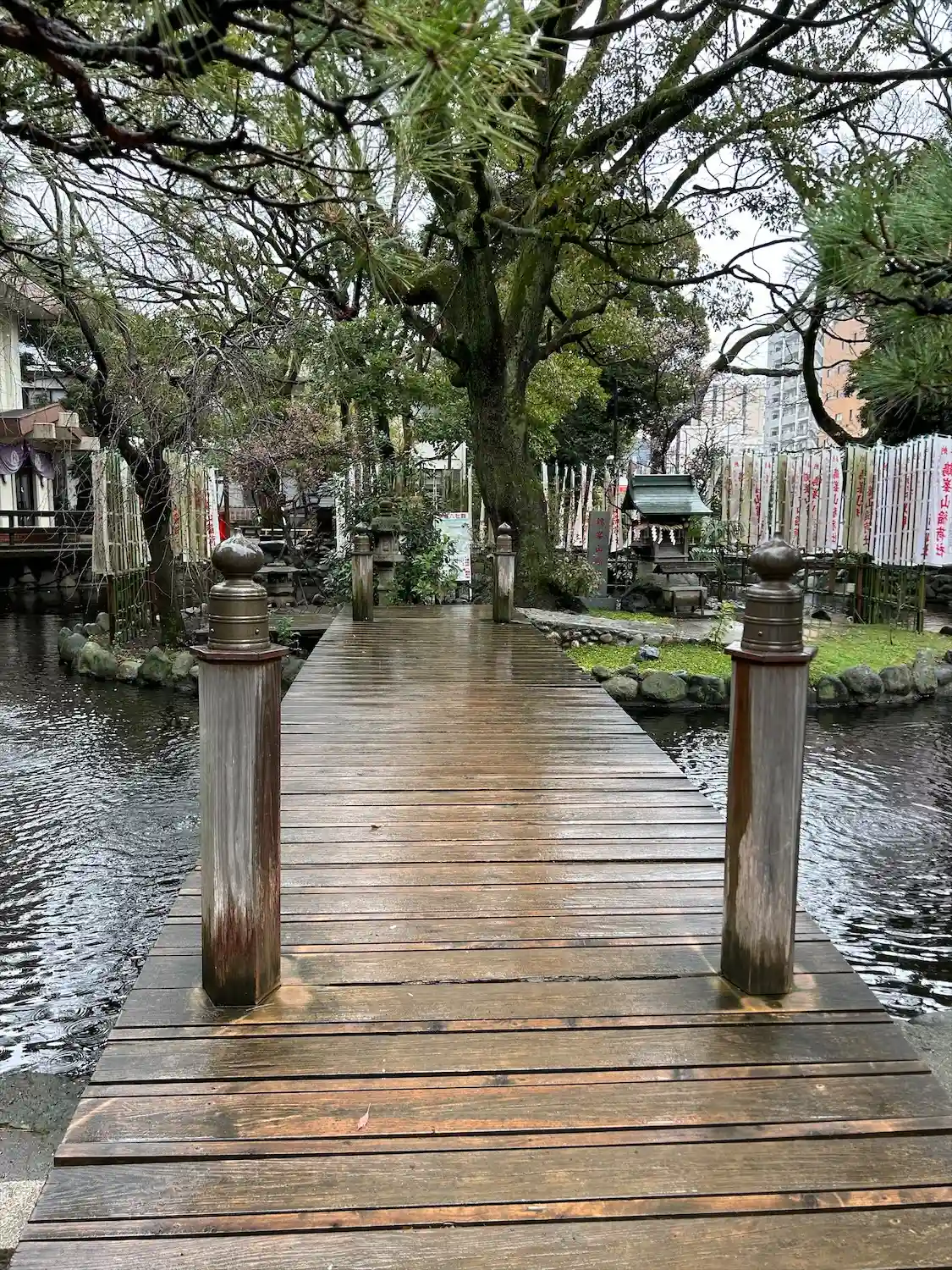 遥拝所(東の池の小島に拝殿があります)