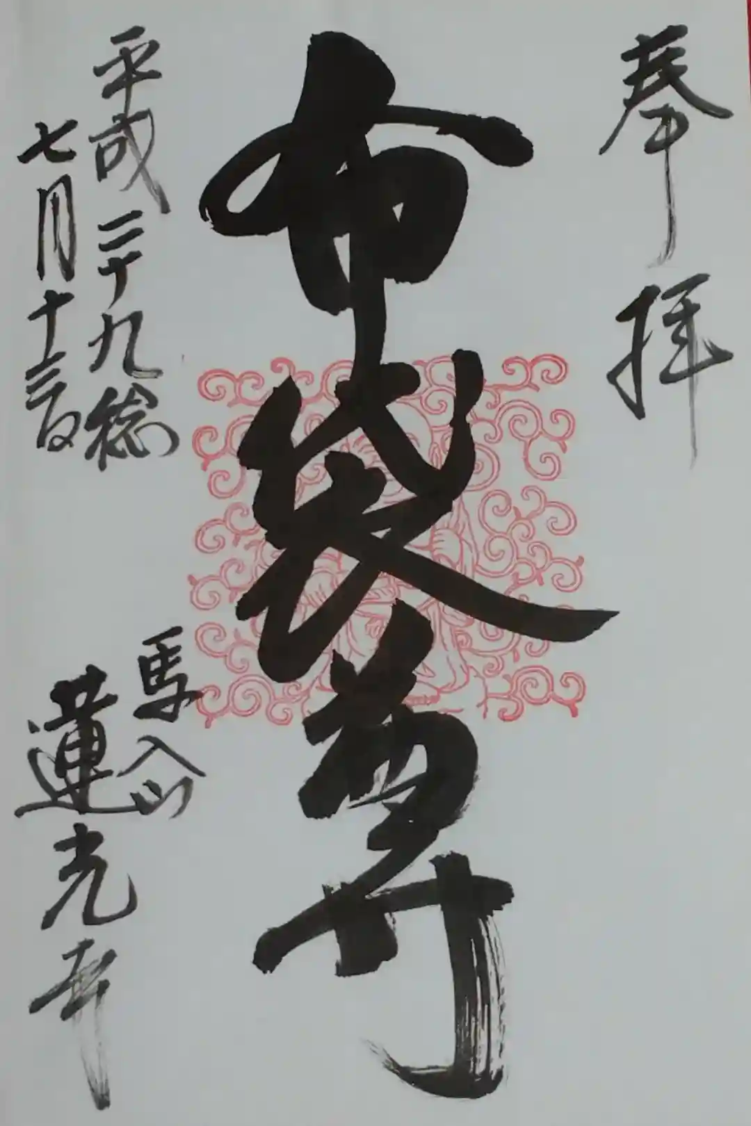 書置きですが御朱印拝受しました。