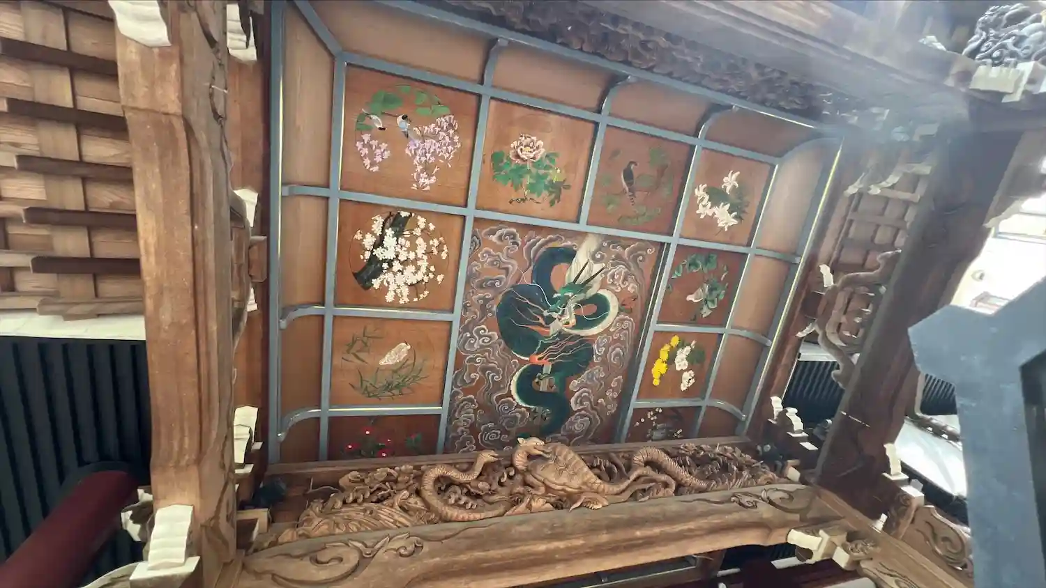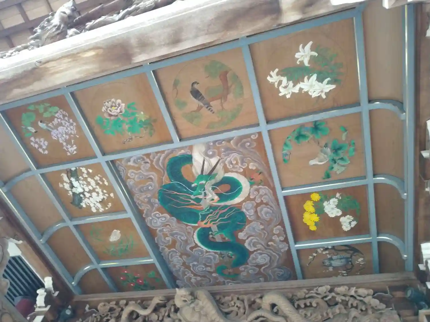 本堂入り口の天井の絵が鮮やかでした。