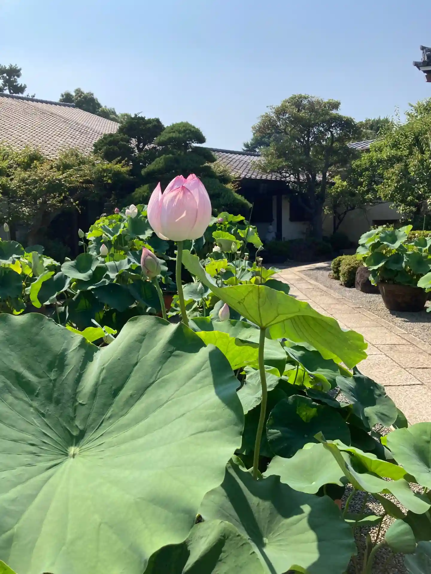 左右に蓮の鉢が並びます。