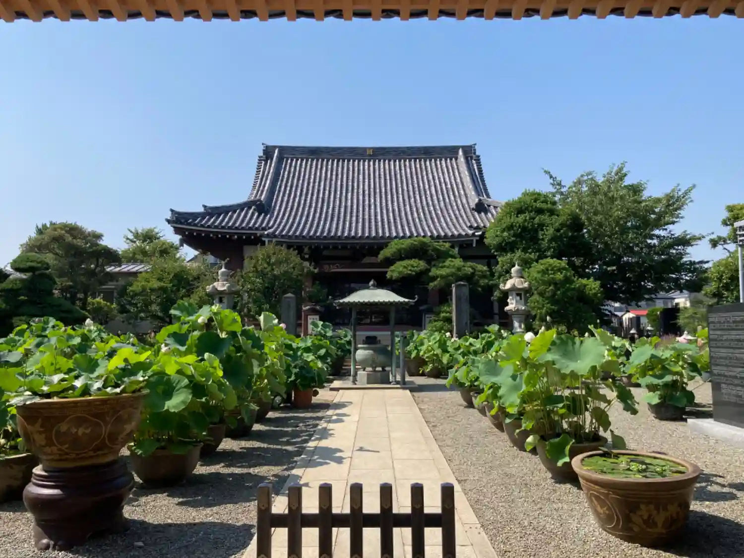 左右に蓮の鉢が並びます。