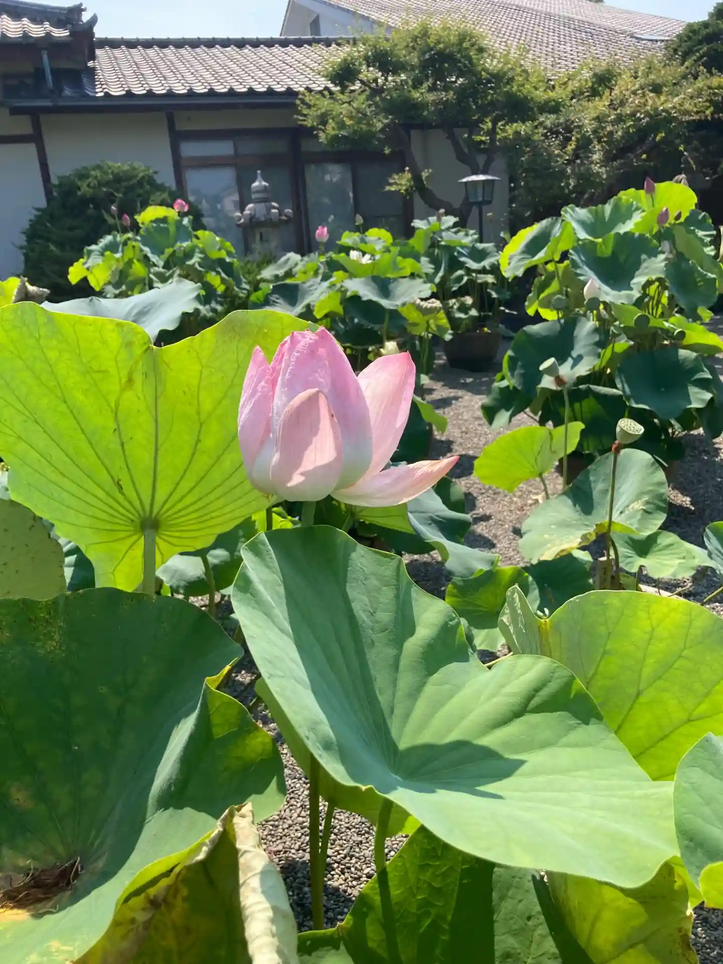 境内を飾る 蓮の花でこの辺の地域ではちょっと名の知れたお寺です