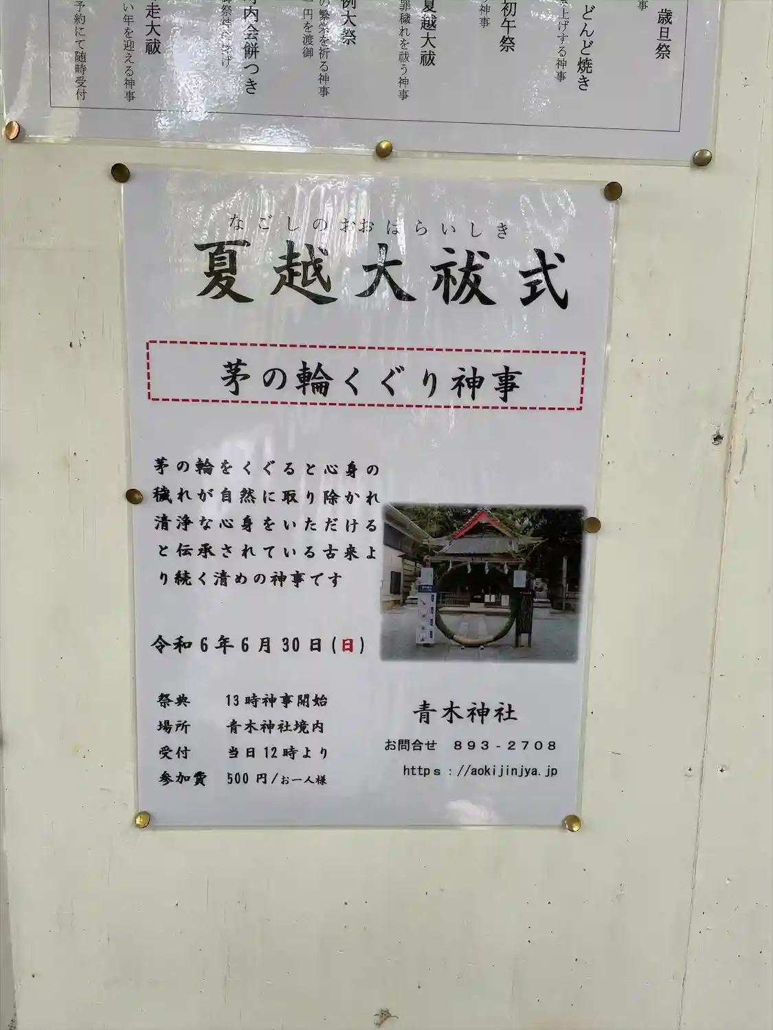 夏越の大祓、当日500円で参加出来ます。13時からです。