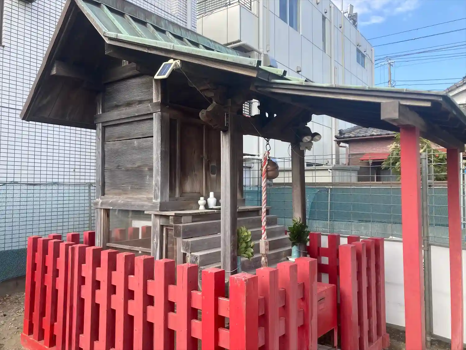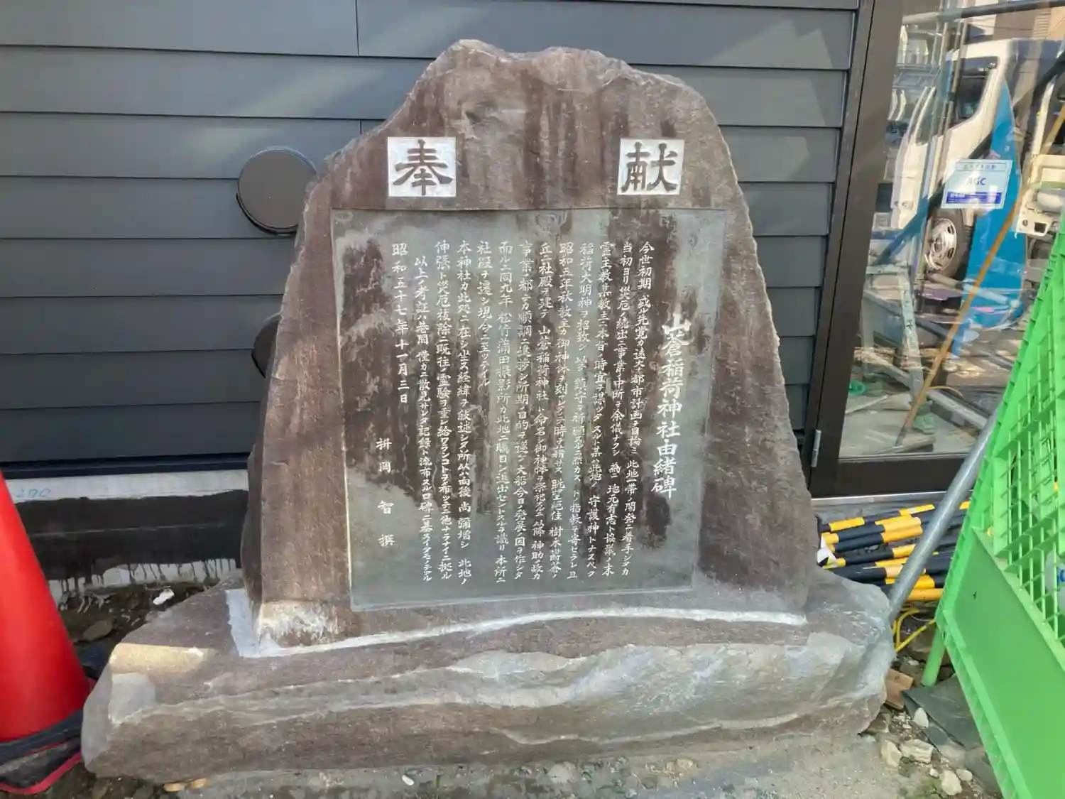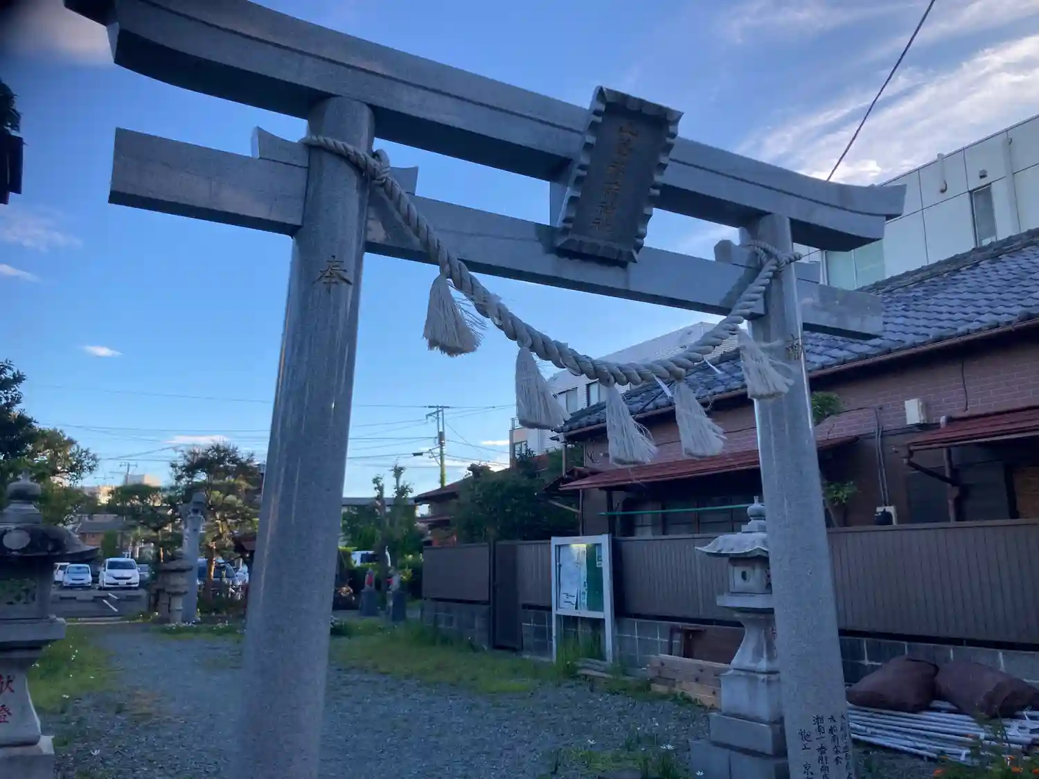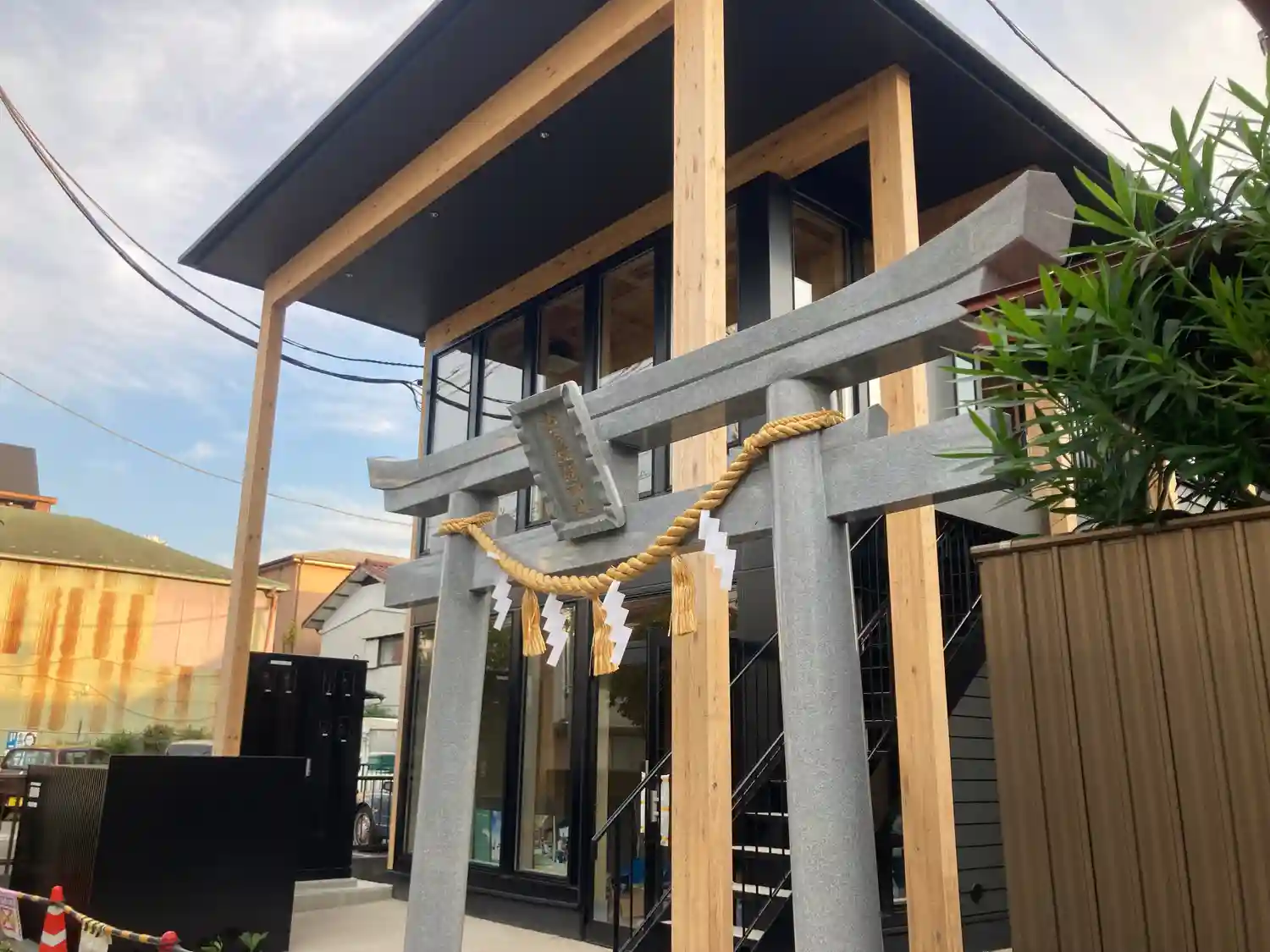 建物の外観工事が終了し、鳥居等の設置工事中でした。
