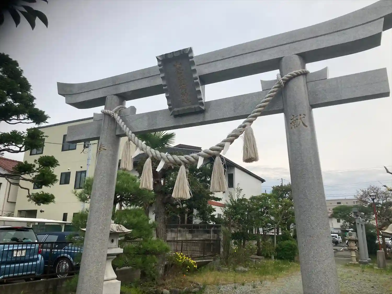 昔は稲荷神社らしい、朱塗りの鳥居でしたが、新しく石の鳥居に変わっていました。