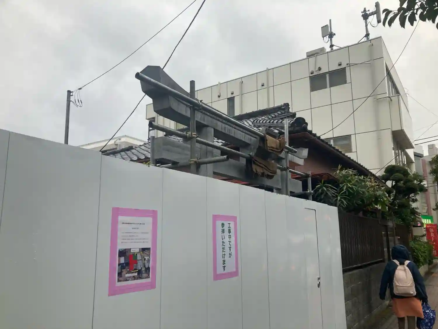 以前から計画のあった境内の工事が始まったみたいです。小さなお店が並…