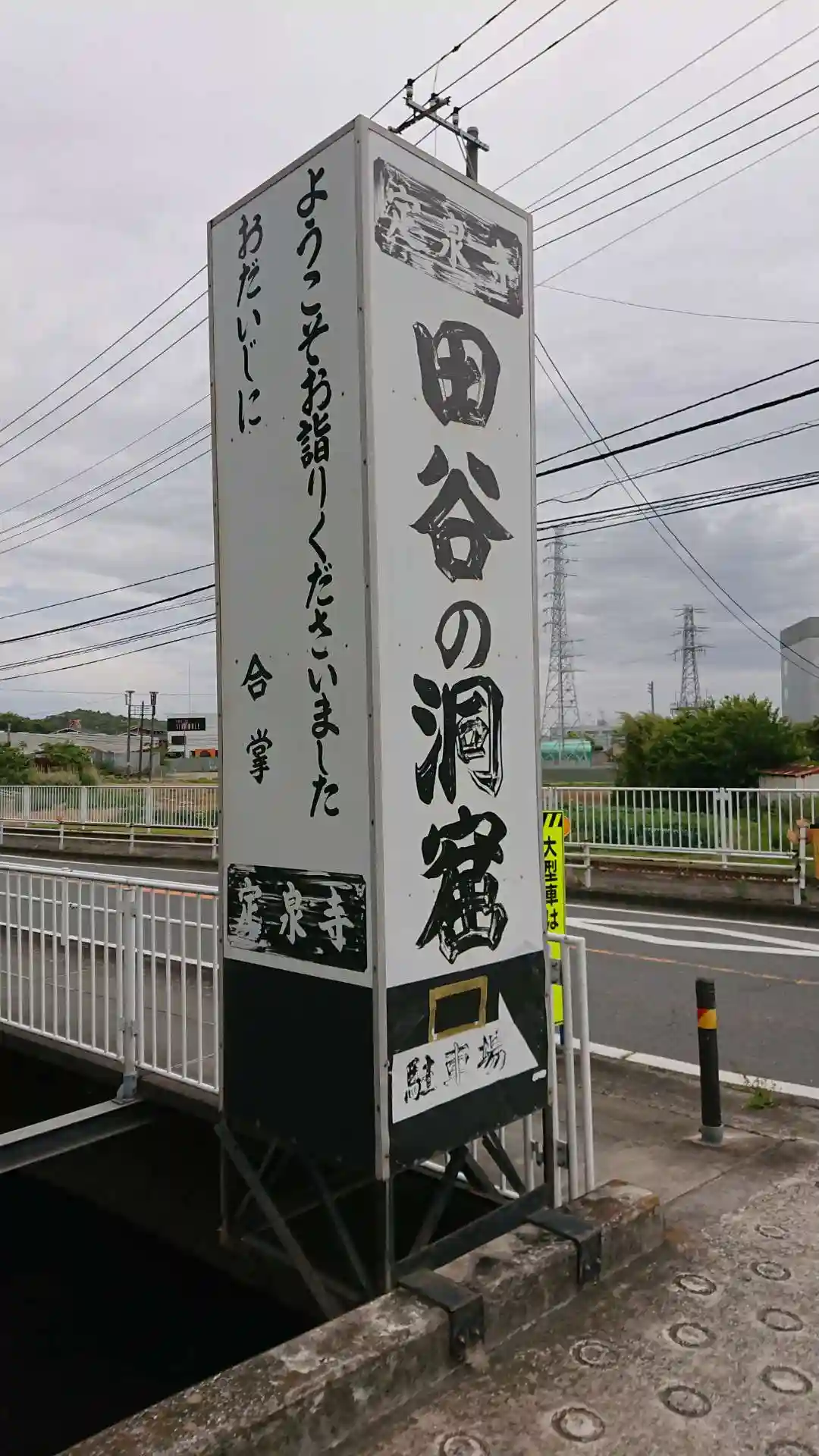 お寺の目印。駐車場もあり。バス停も近く、洞窟前だったので分かりやすく、乗り過ごすこともないです。