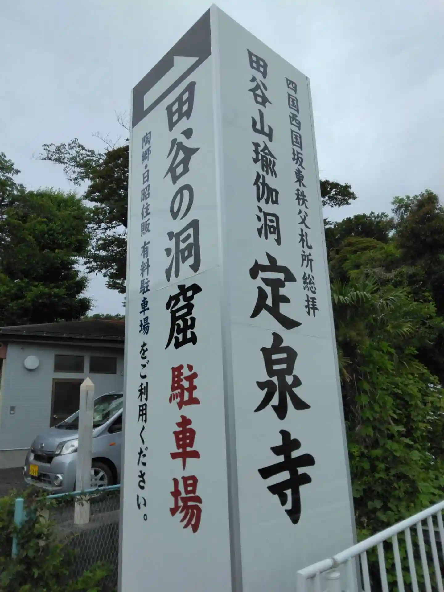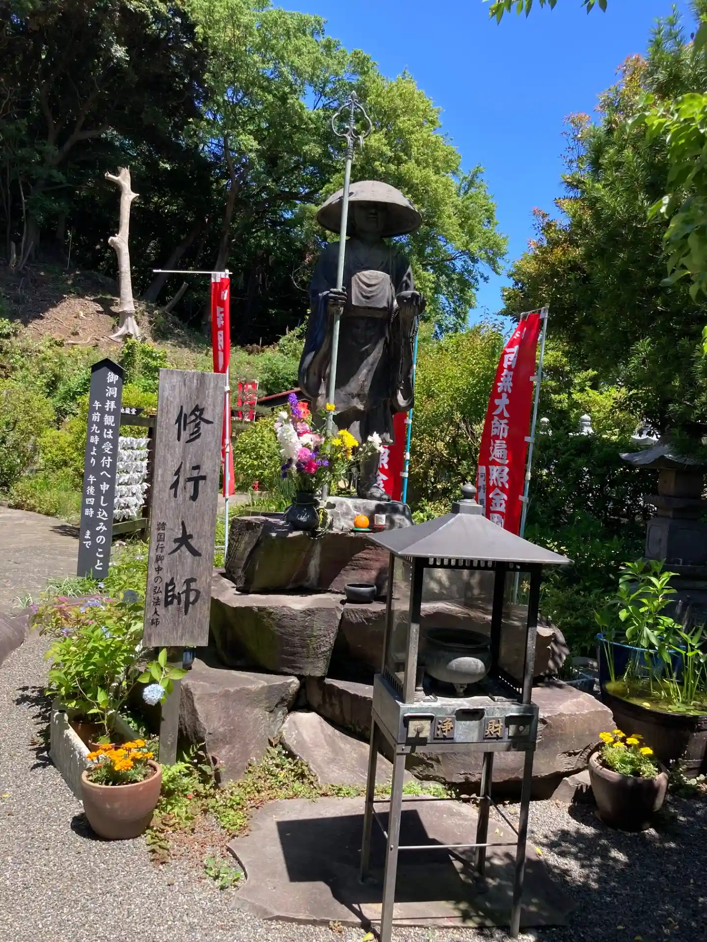 お寺の目印。駐車場もあり。バス停も近く、洞窟前だったので分かりやすく、乗り過ごすこともないです。