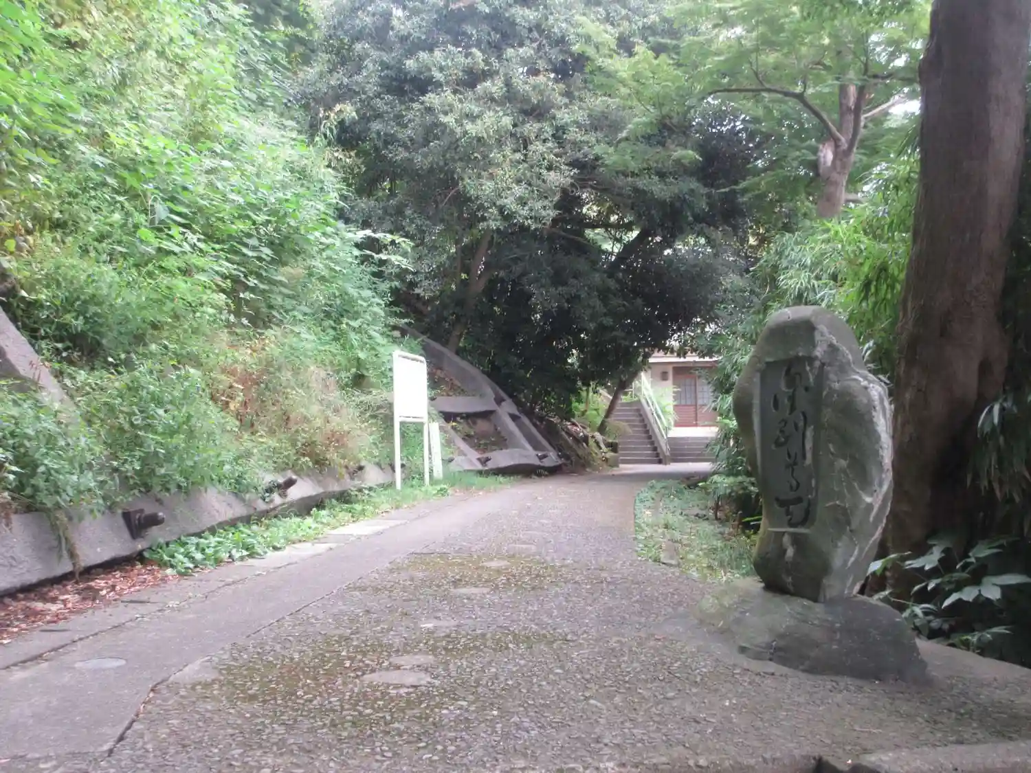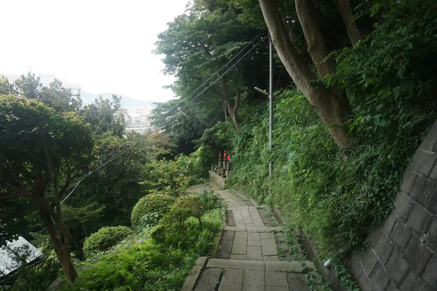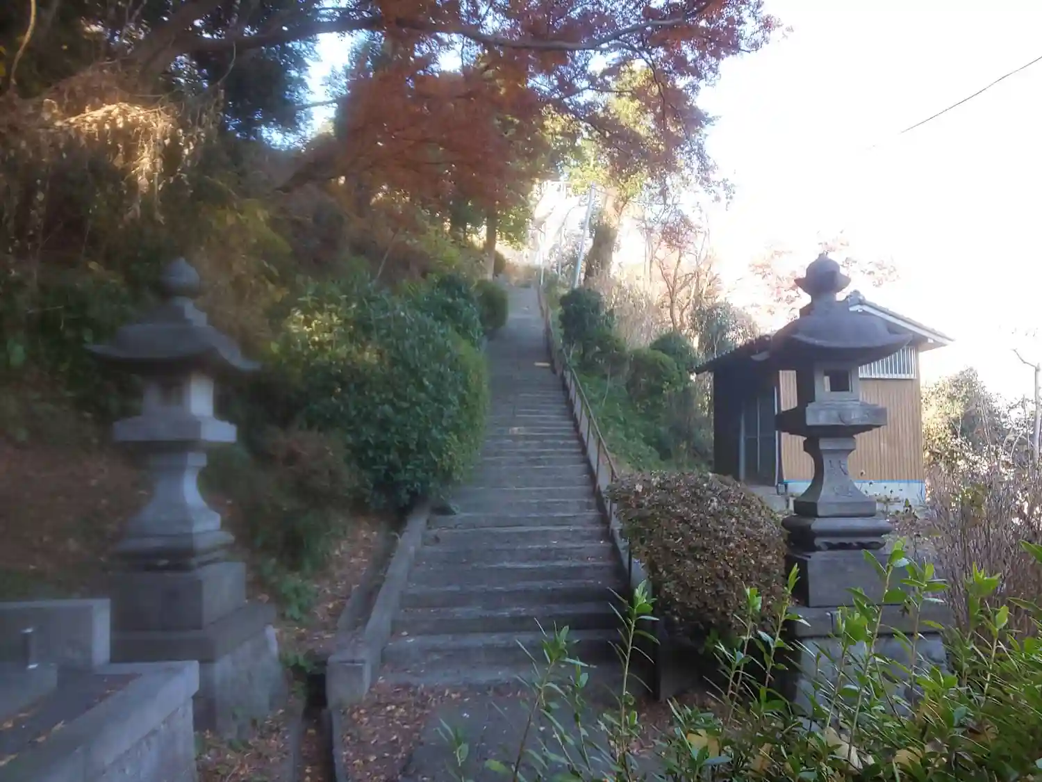 過去の地震の影響か階段が山裾側に傾斜していて非常に上りづらいです。