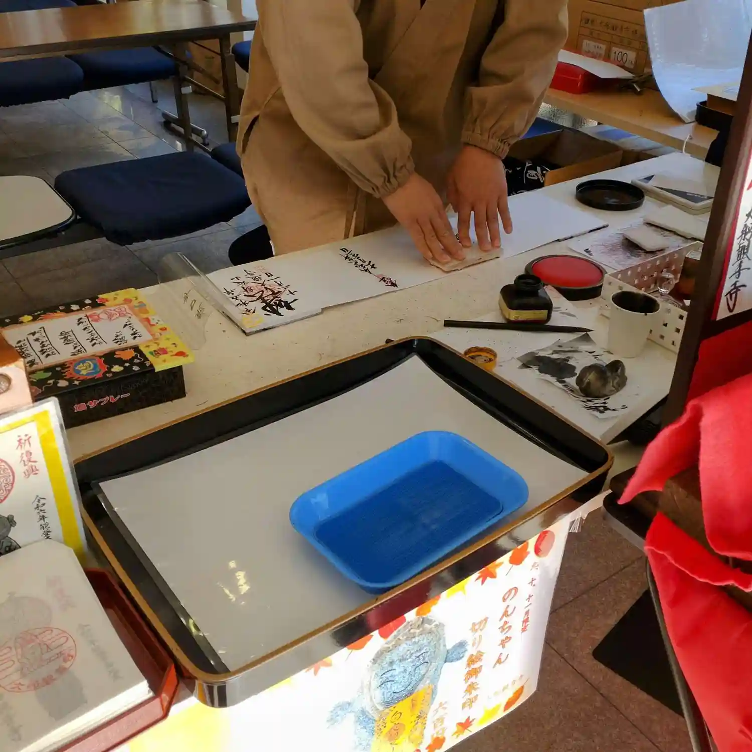 休憩処に、お坊さんによる御朱印帳のご紹介が。