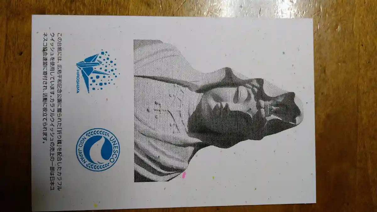 この慰霊碑は、広島·長崎の爆心地の石及びビキニで被爆した第五福竜丸の遺品を添え千羽鶴を刻んだソリに乗せ、被爆者が平和の丘に向かう姿を表しています。