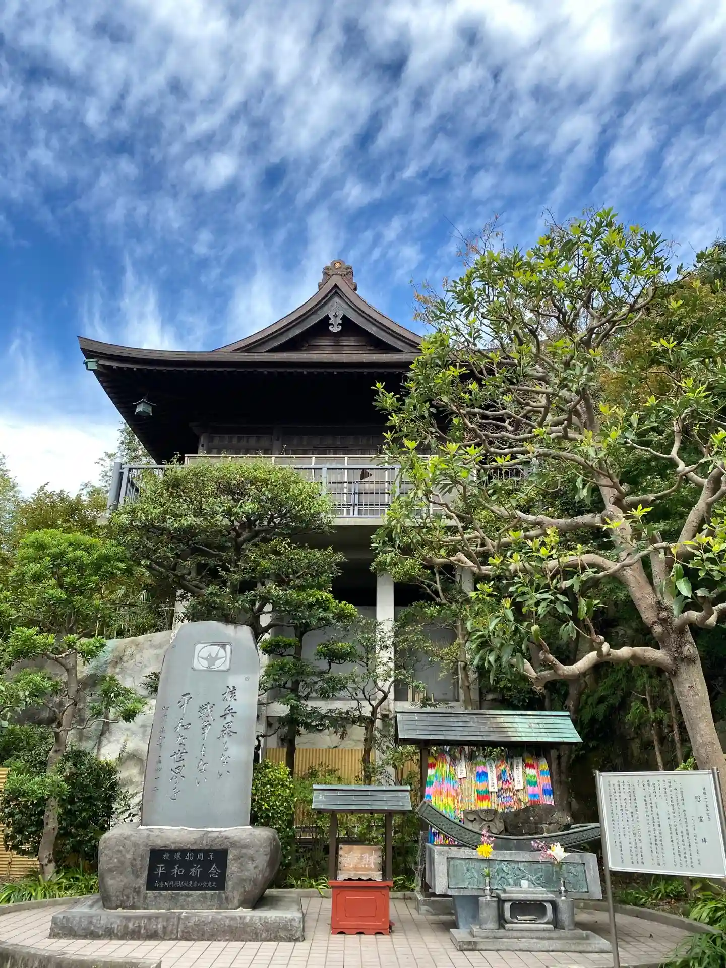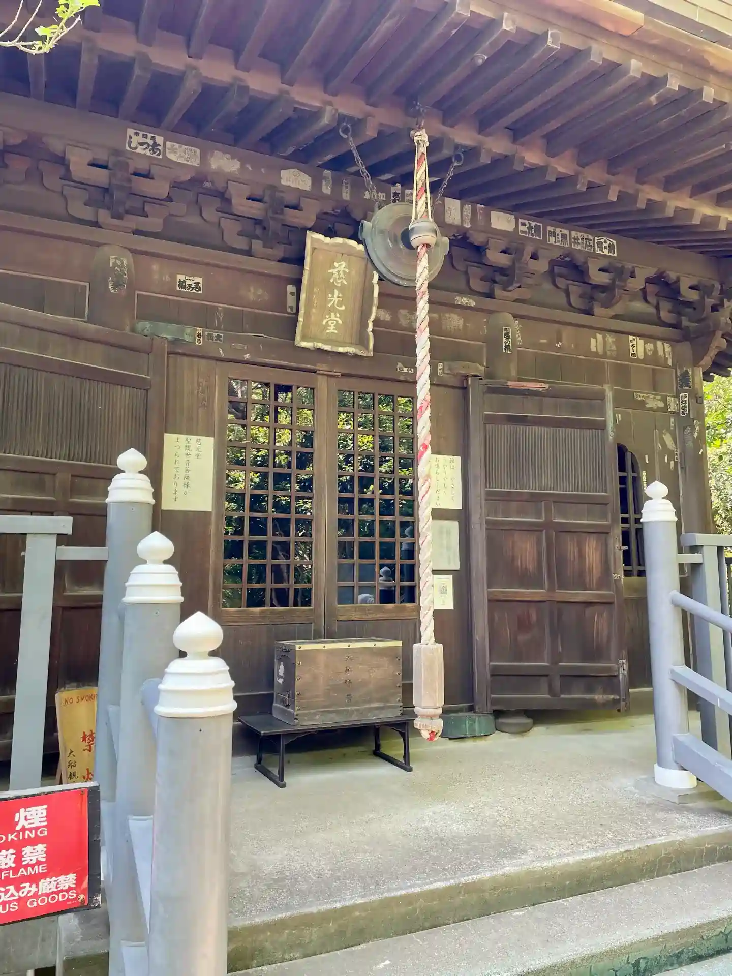 大船駅から見える観音様を祀るお寺です。入口から三門までとても急な坂道でした。拝観料はお賽銭箱に入れ…