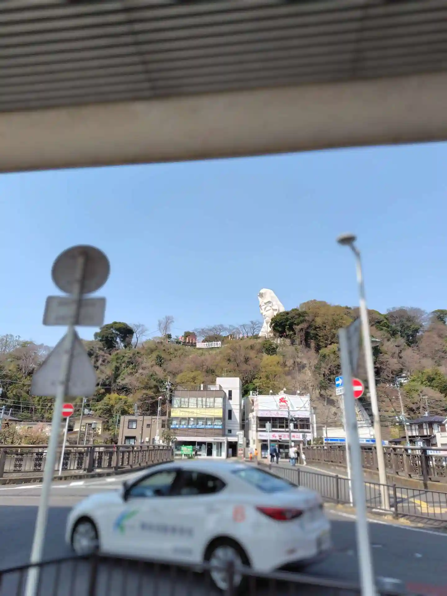 大船駅の連絡橋からも山頂の観音様がよく見えます。