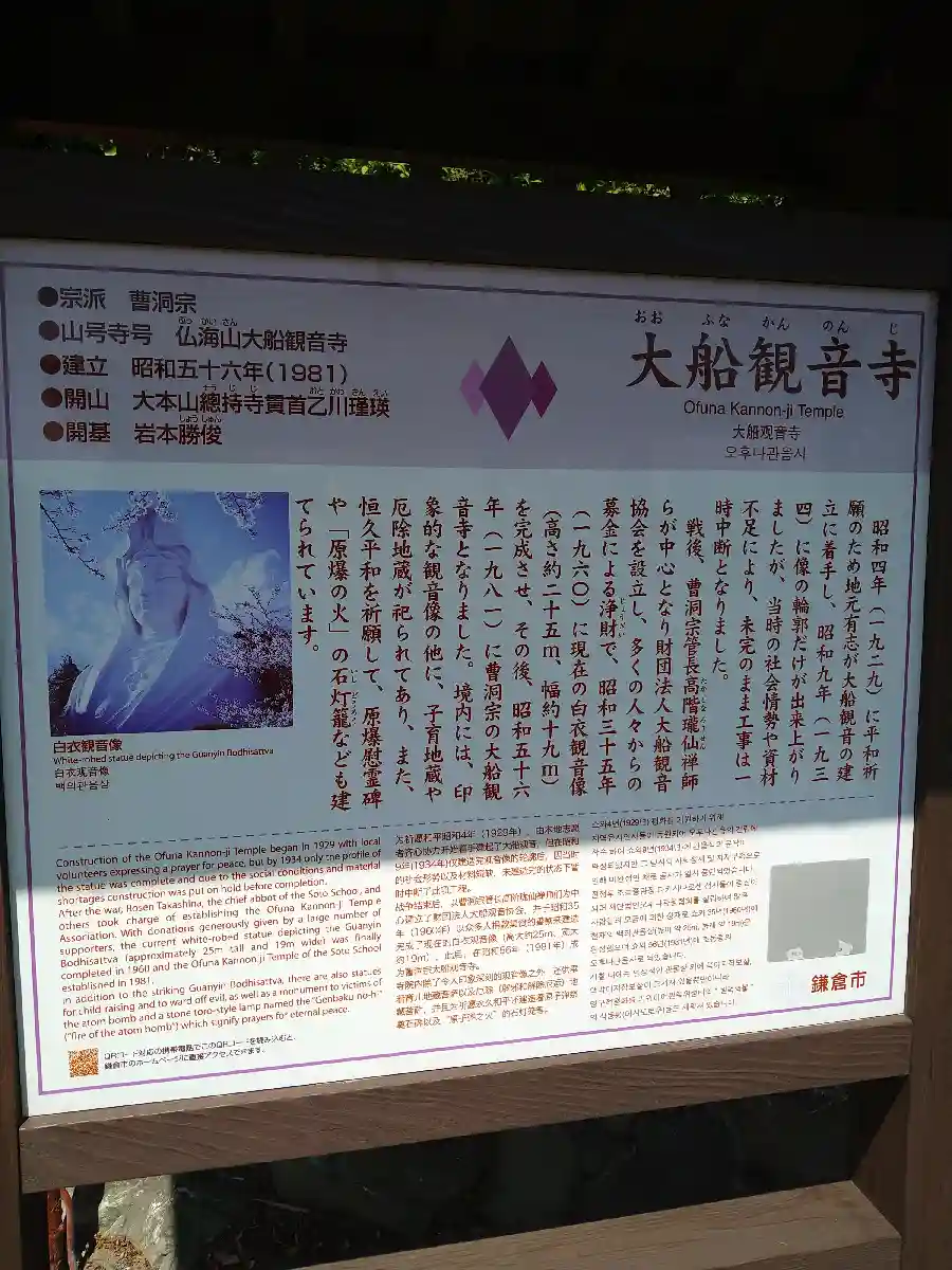 大船フラワーセンターの帰りに寄りました。観音様の中では建立時の歴史を知れます。大船駅に近く、町が見…