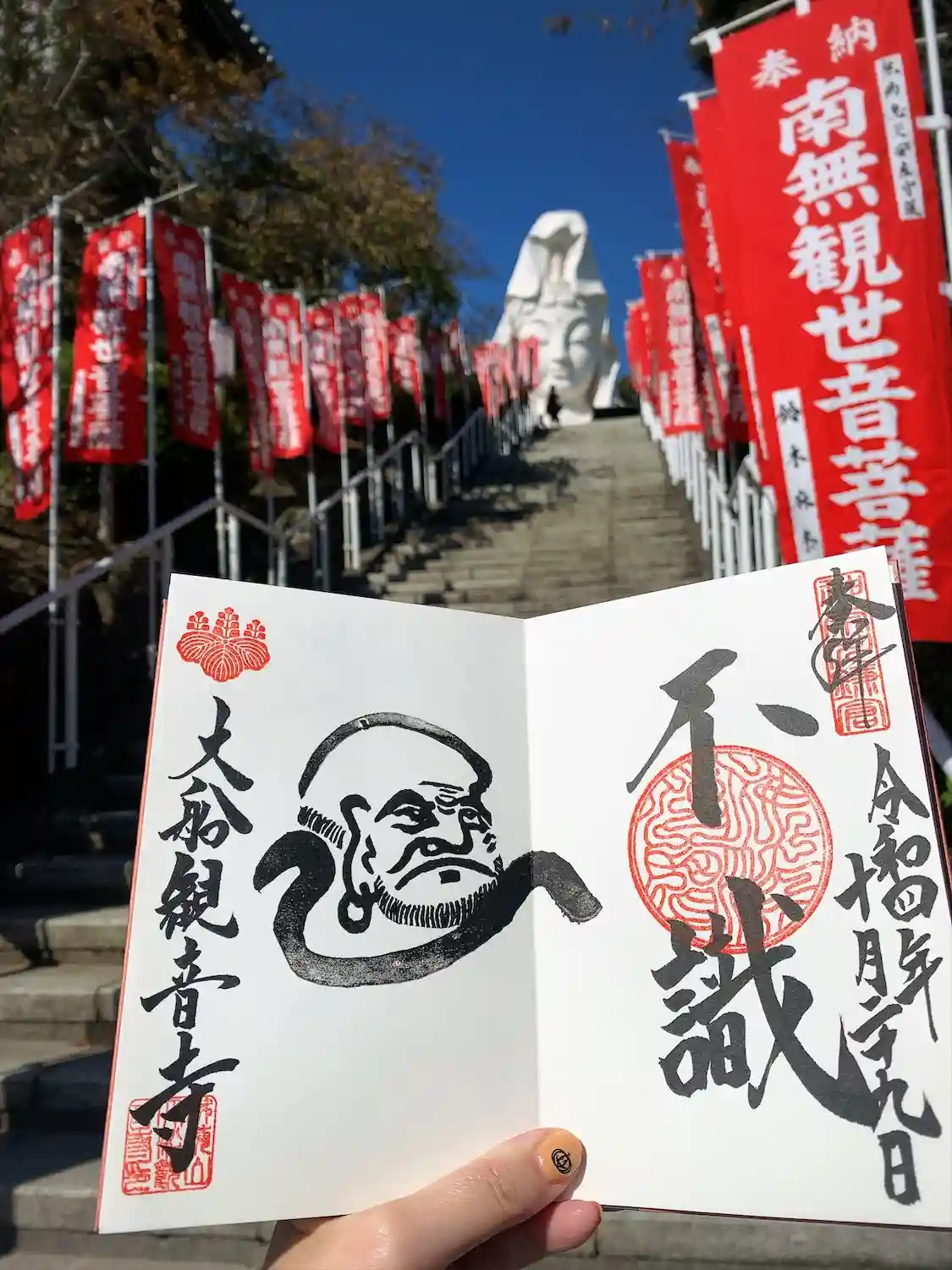 大船駅から見える白衣観音のある大船観音寺に参拝。胎内にも参拝可能。御朱印は直接ご記入いただきました…