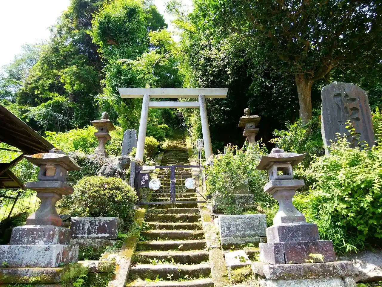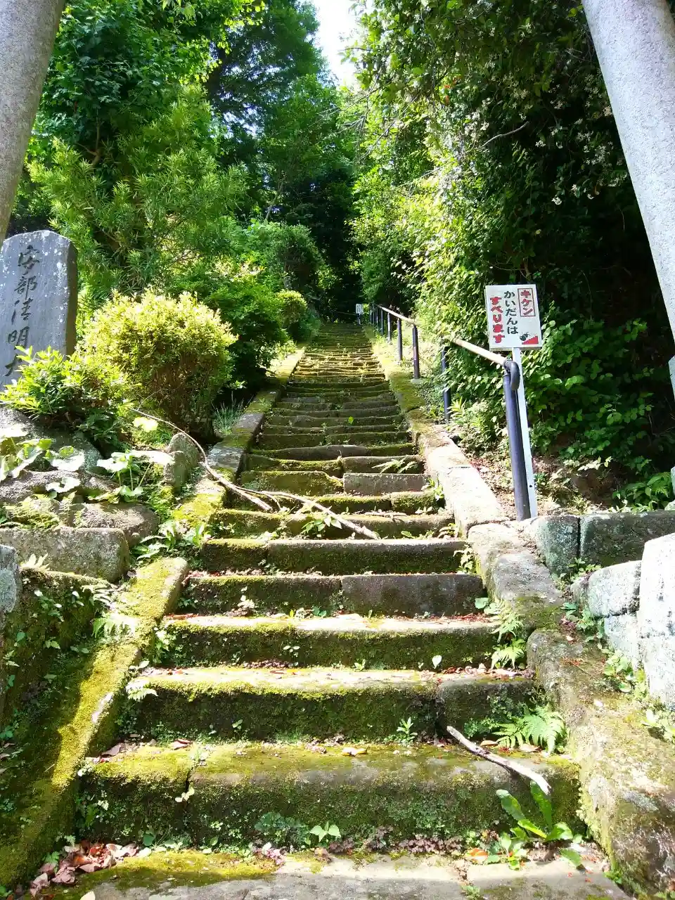 「危険 登るな」の文字と急勾配の石段がインパクト大の神社。