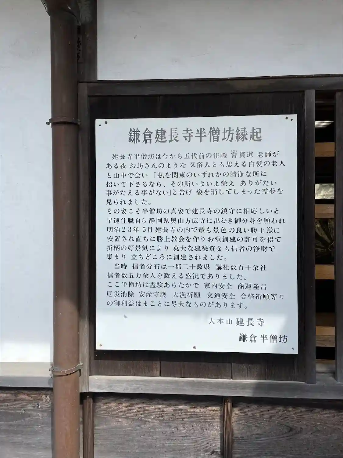 また、建長寺で最も景色がよいとされる勝上巖に安置されているため、半僧坊の参道はハイキングコースとしても有名である。