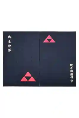 黒色の地に、表面は右下に赤色で北条鱗の寺紋、左上に御朱印帳の文字、裏面は左上に赤色で北条鱗の寺紋、右下に建長興國禅寺の文字が入っています。