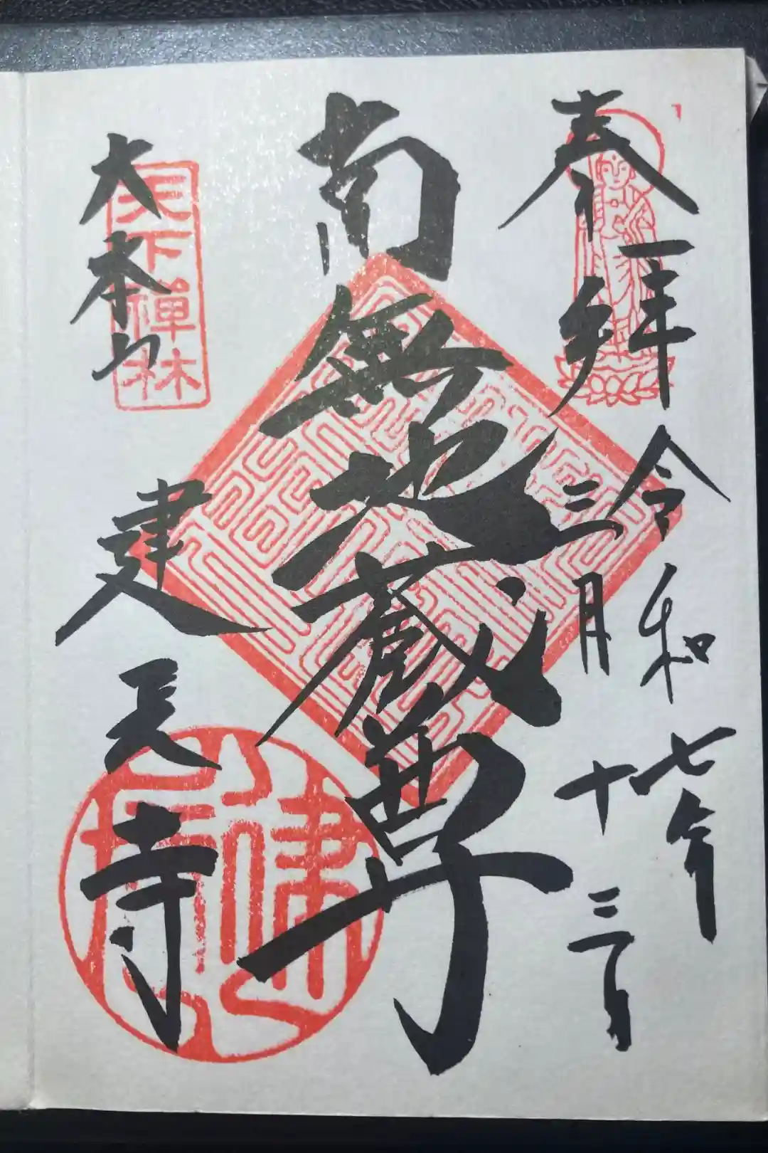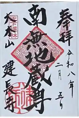 真ん中に南無地蔵尊、左下に建長寺と書かれ、右上に地蔵尊のお姿の印、左上に天下禅林の印、社印が押されています。