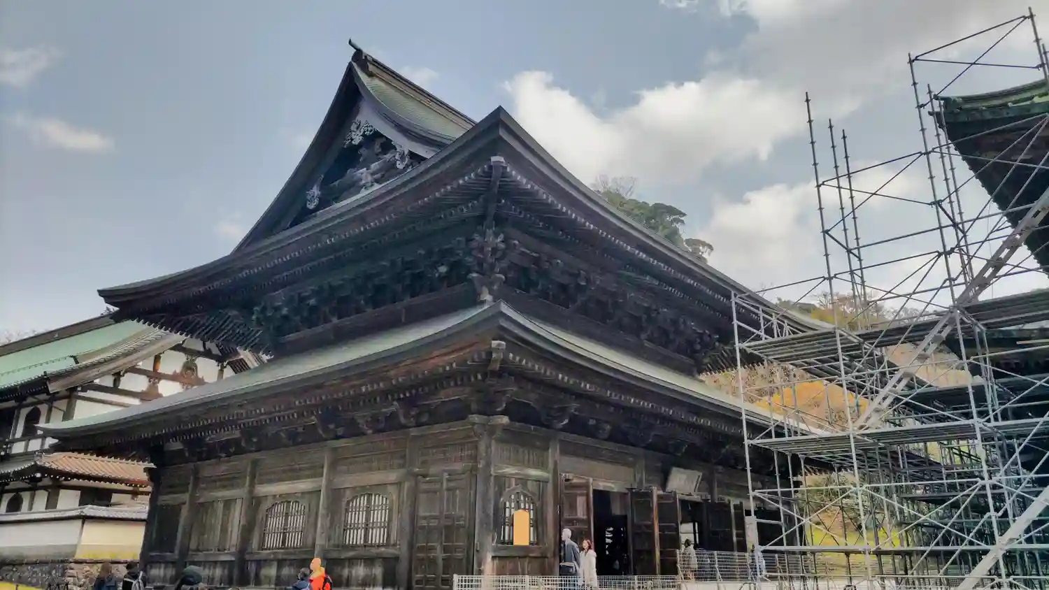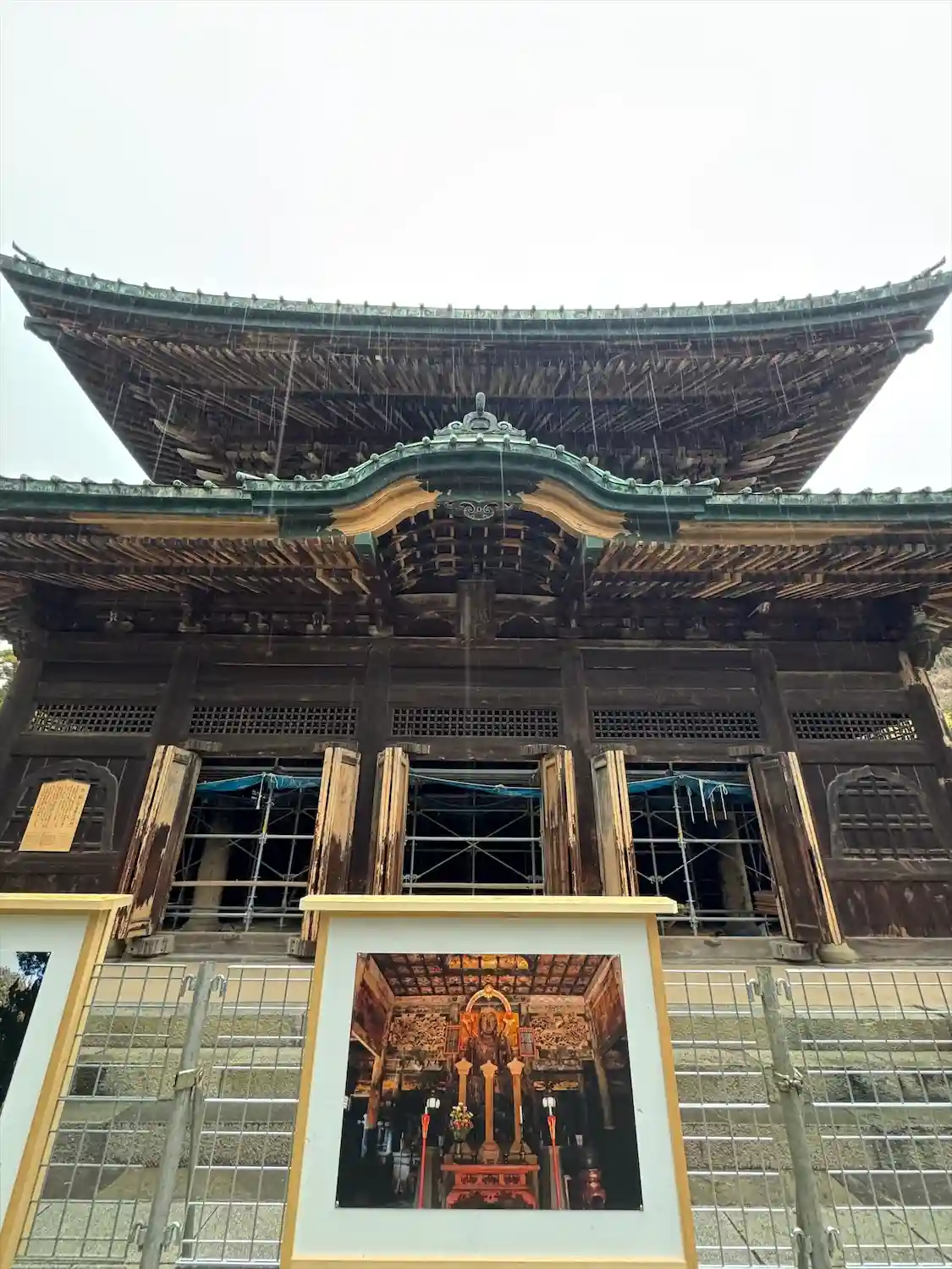 仏殿は現在修復工事中だが脇から拝観可能。