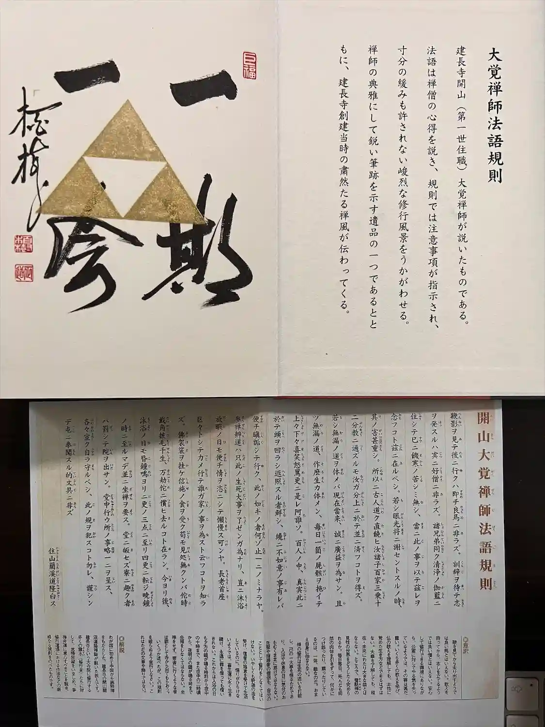 裏に「天下禅林」の意味外書いてあります。