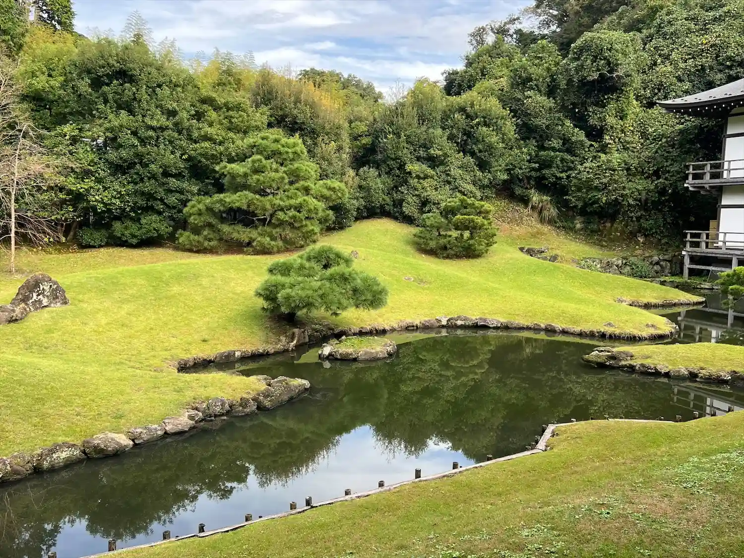 朝から歩き通しだったので、きれいなお庭を眺めながら一休み。