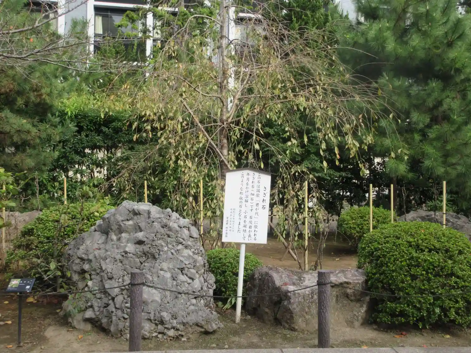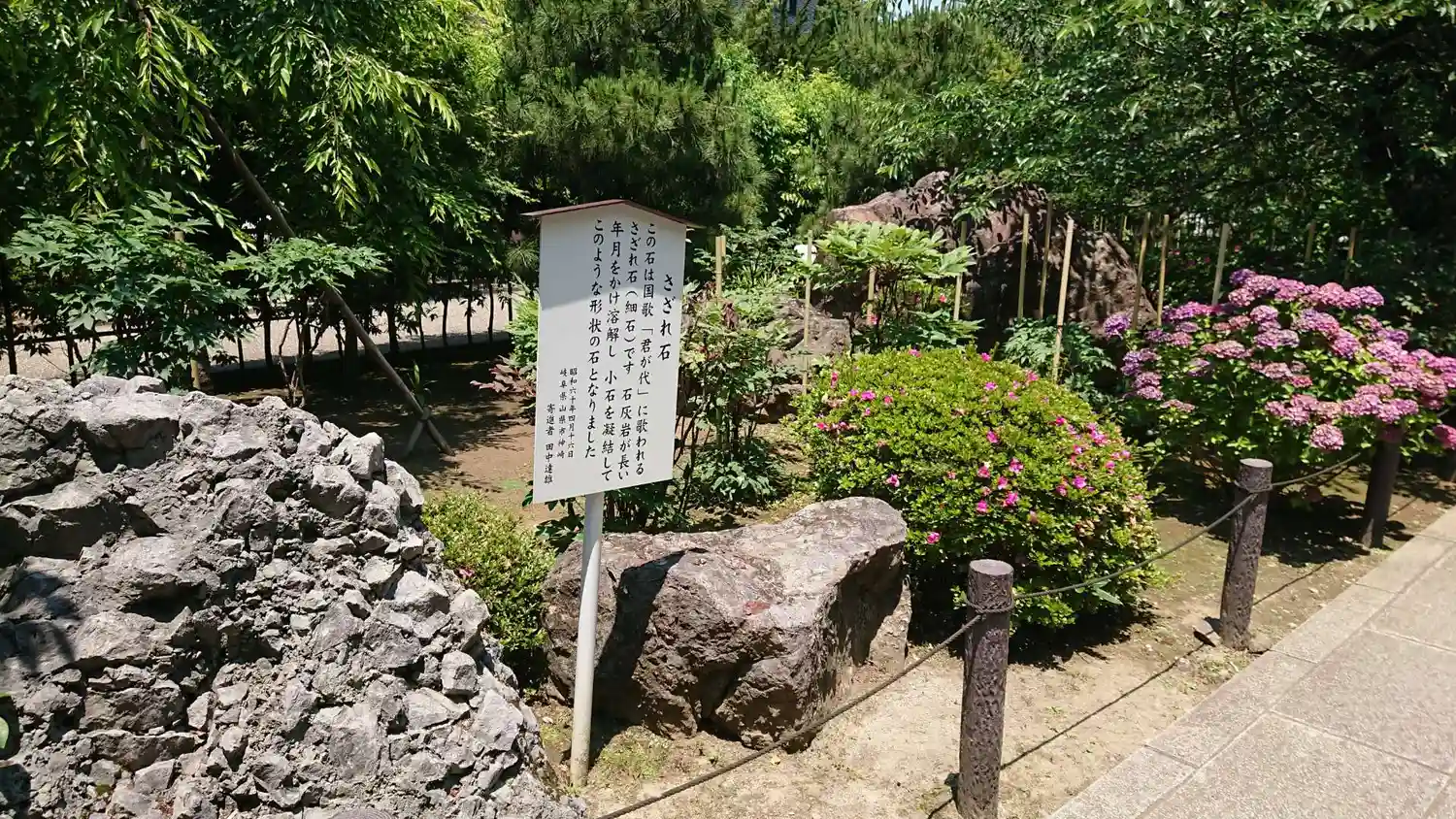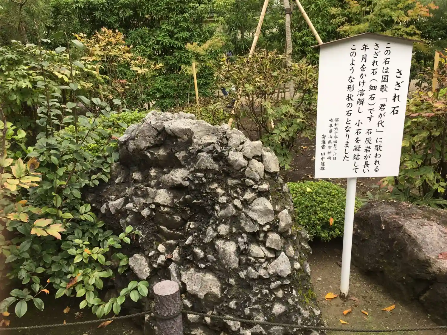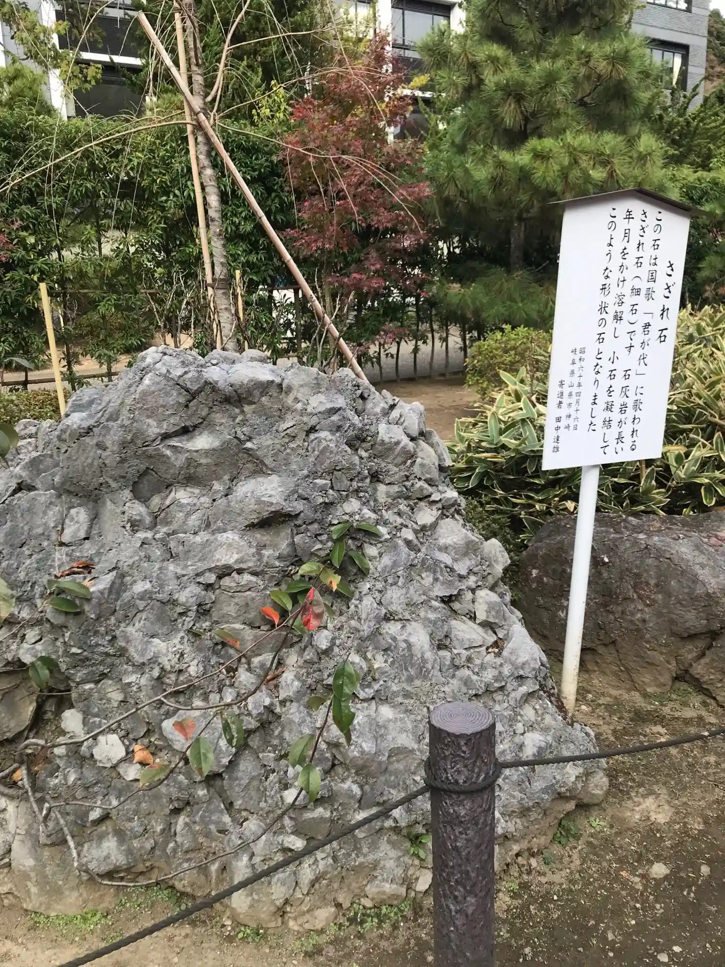 入ってすぐの所にあった「さざれ石」。国歌「君が代」の歌詞に出てくるあのさざれ石ってこういうのだそうです。