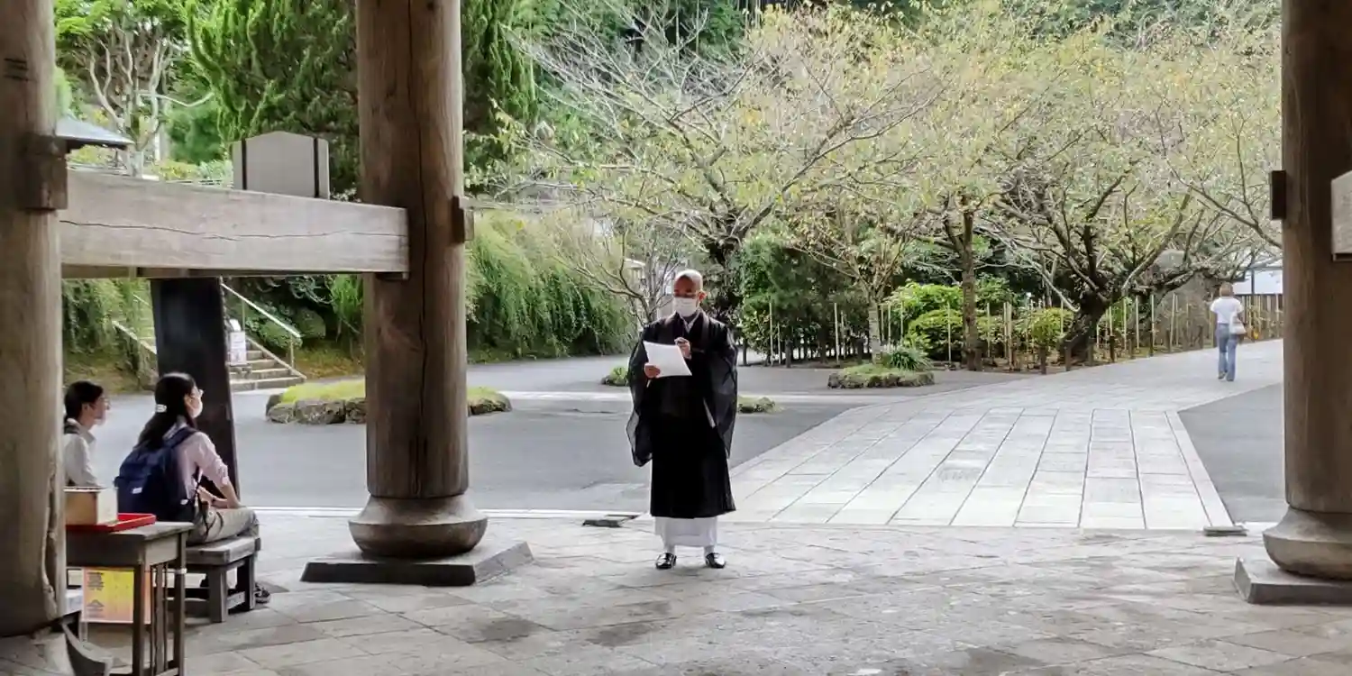 山門の下で法話会が開かれていた