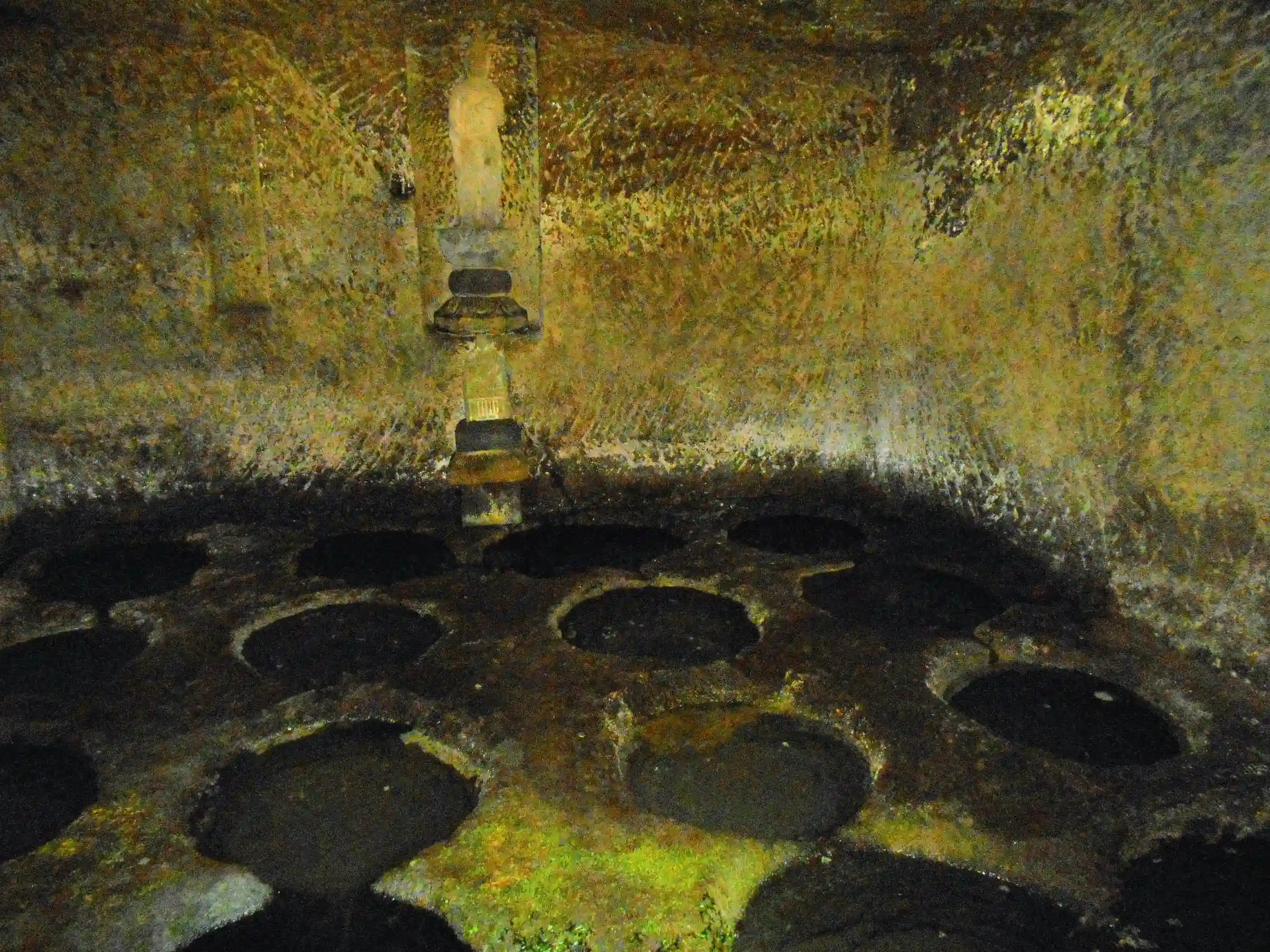 11-5) 床面に計16の丸穴があり、水が湧き出している。