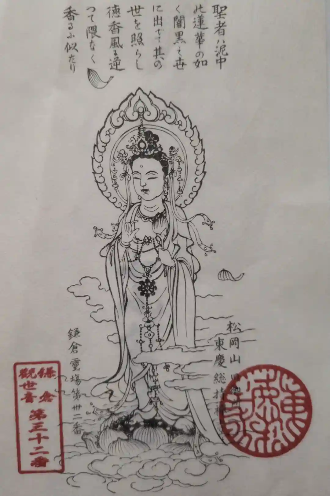 | ご由緒 | 北条時宗の夫人覚山尼が北条貞時を開基として建てた寺です。「かけこみ寺」「縁切寺」といわれた、男子禁制の寺法のもとに多くの女性を救った尼寺でした。しかし明治三十五年(1902)から男僧寺となっています。美しい聖観音(重文財)水月観音(県重文財)があります。 |