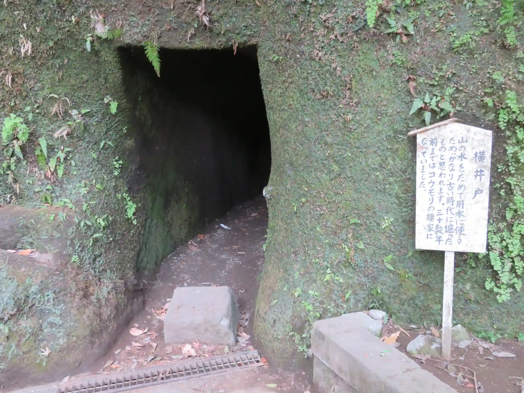 横井戸。覗き込んだところ、真っ暗でした