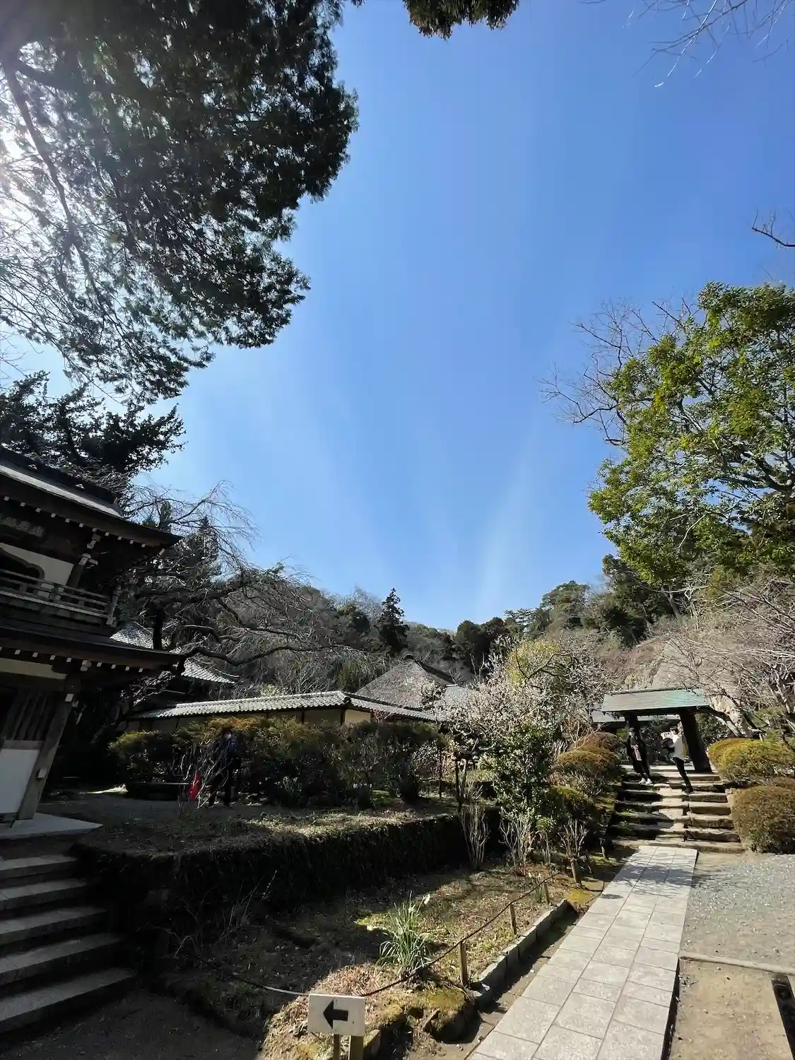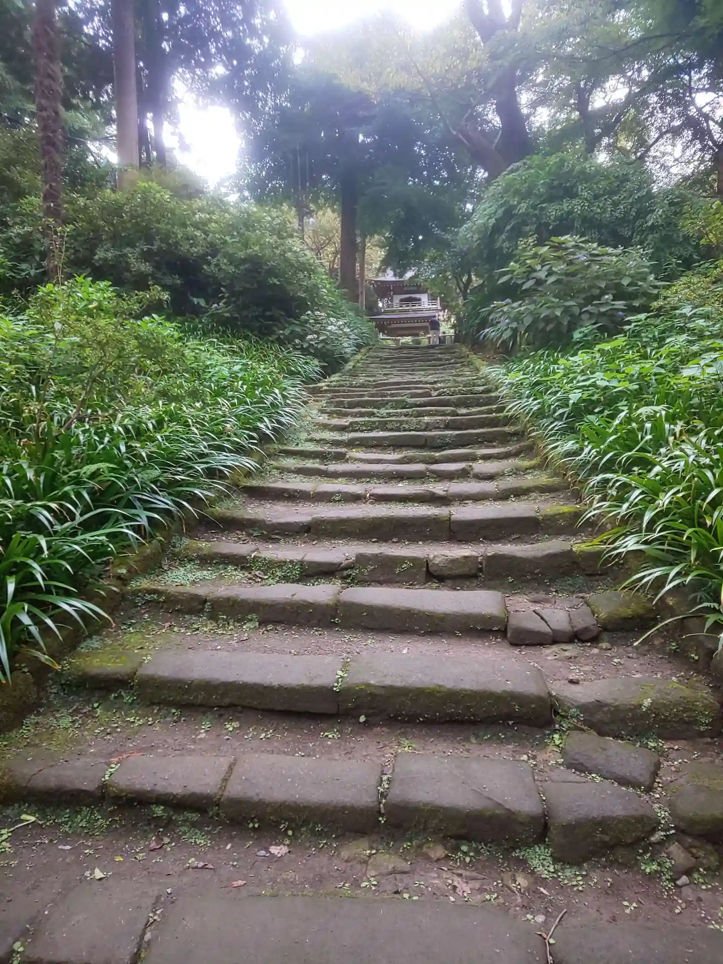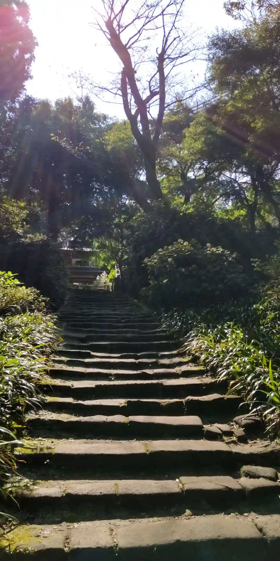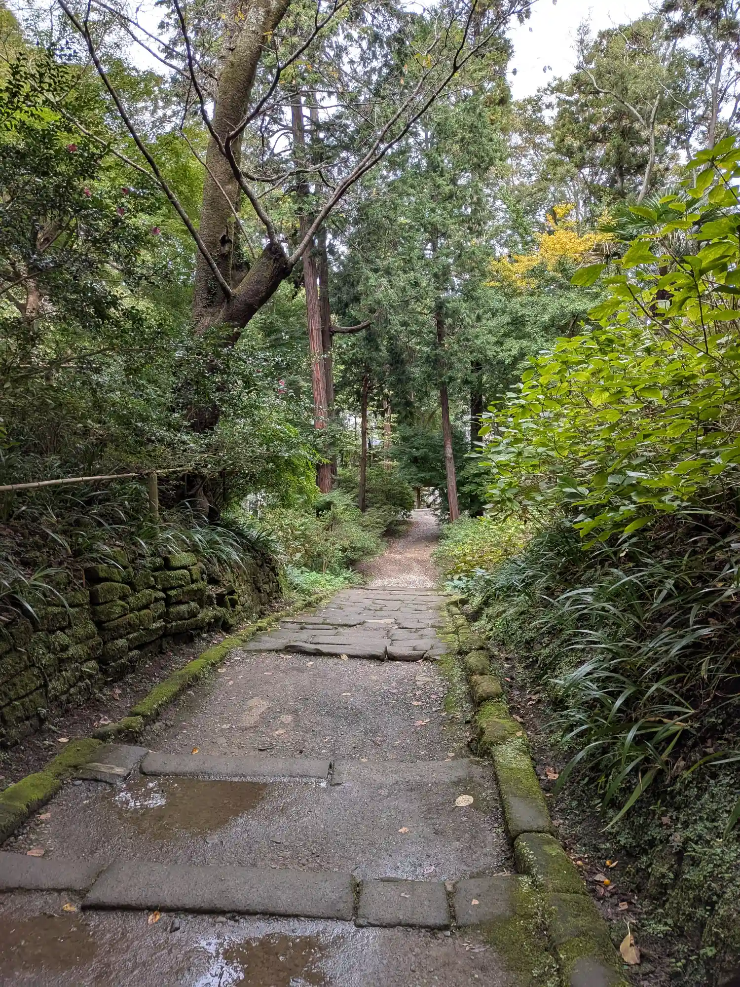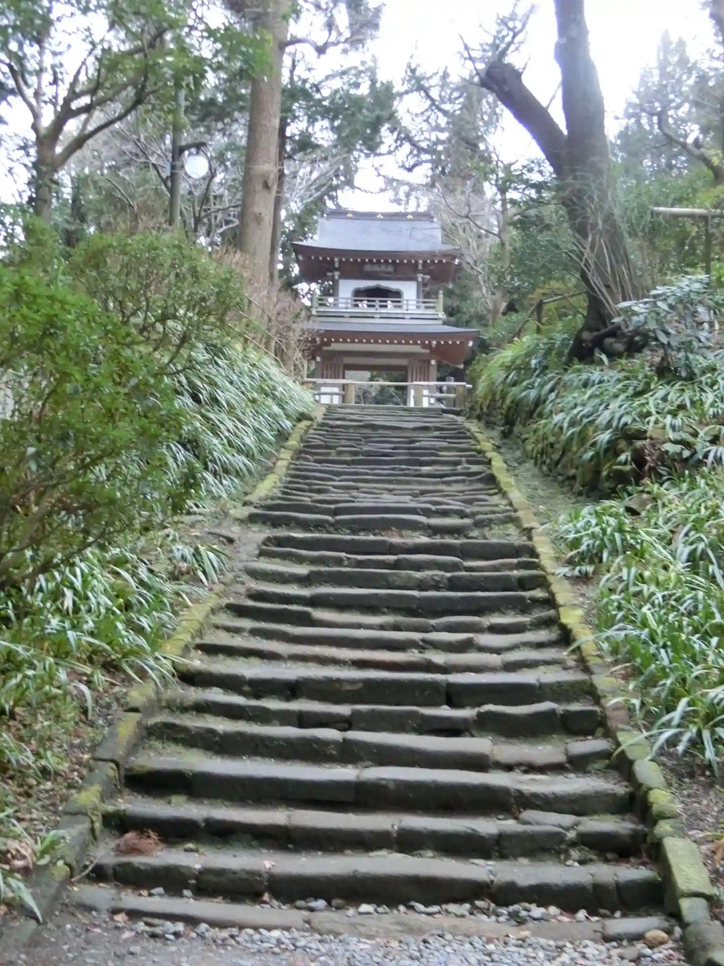 円覚寺から駐車場へ戻りながら浄智寺の寺標を曲がると正面に風情満ち溢れた石階…