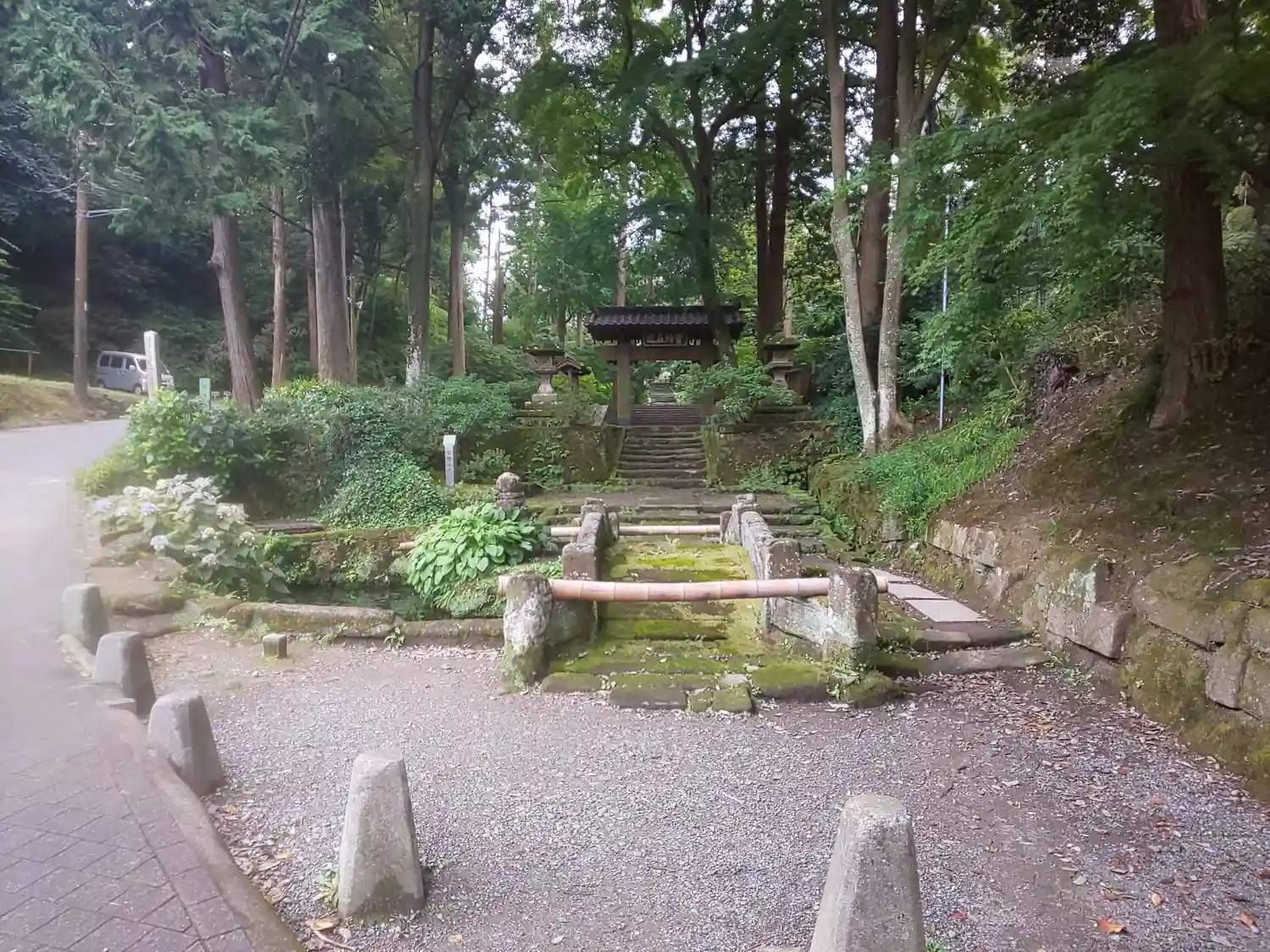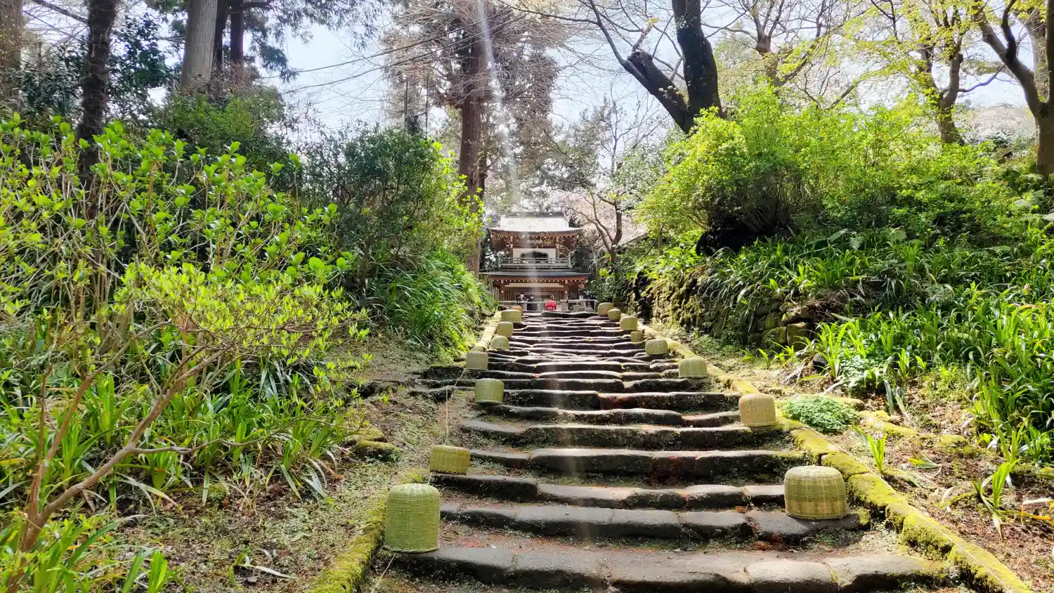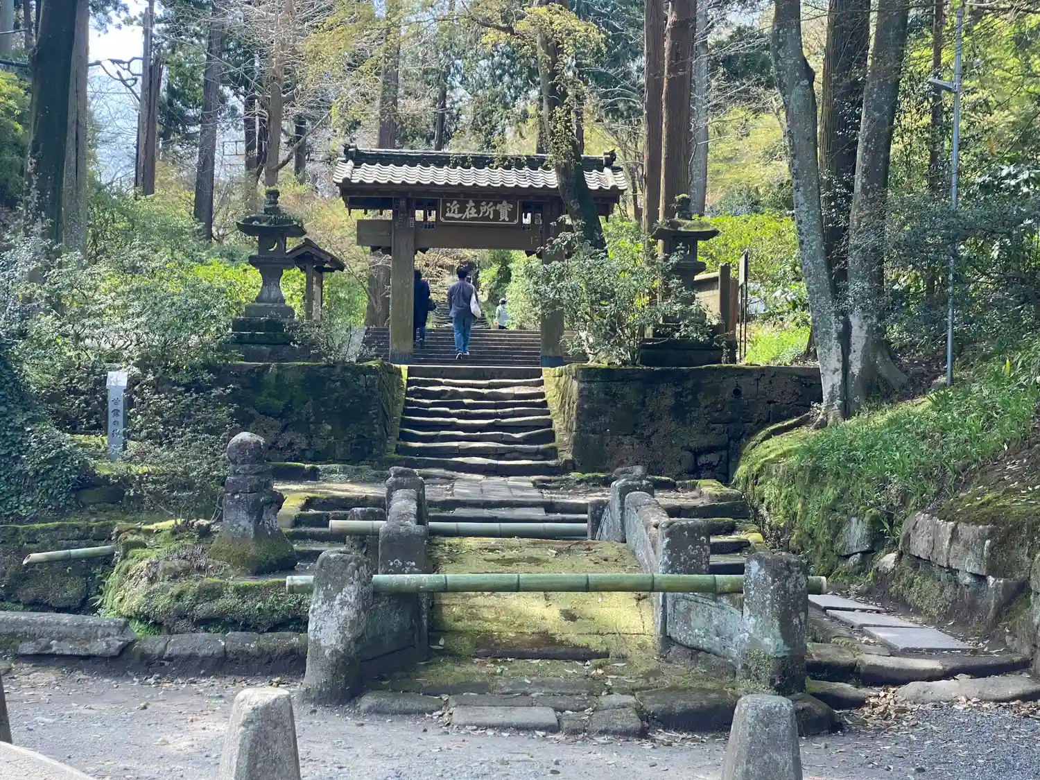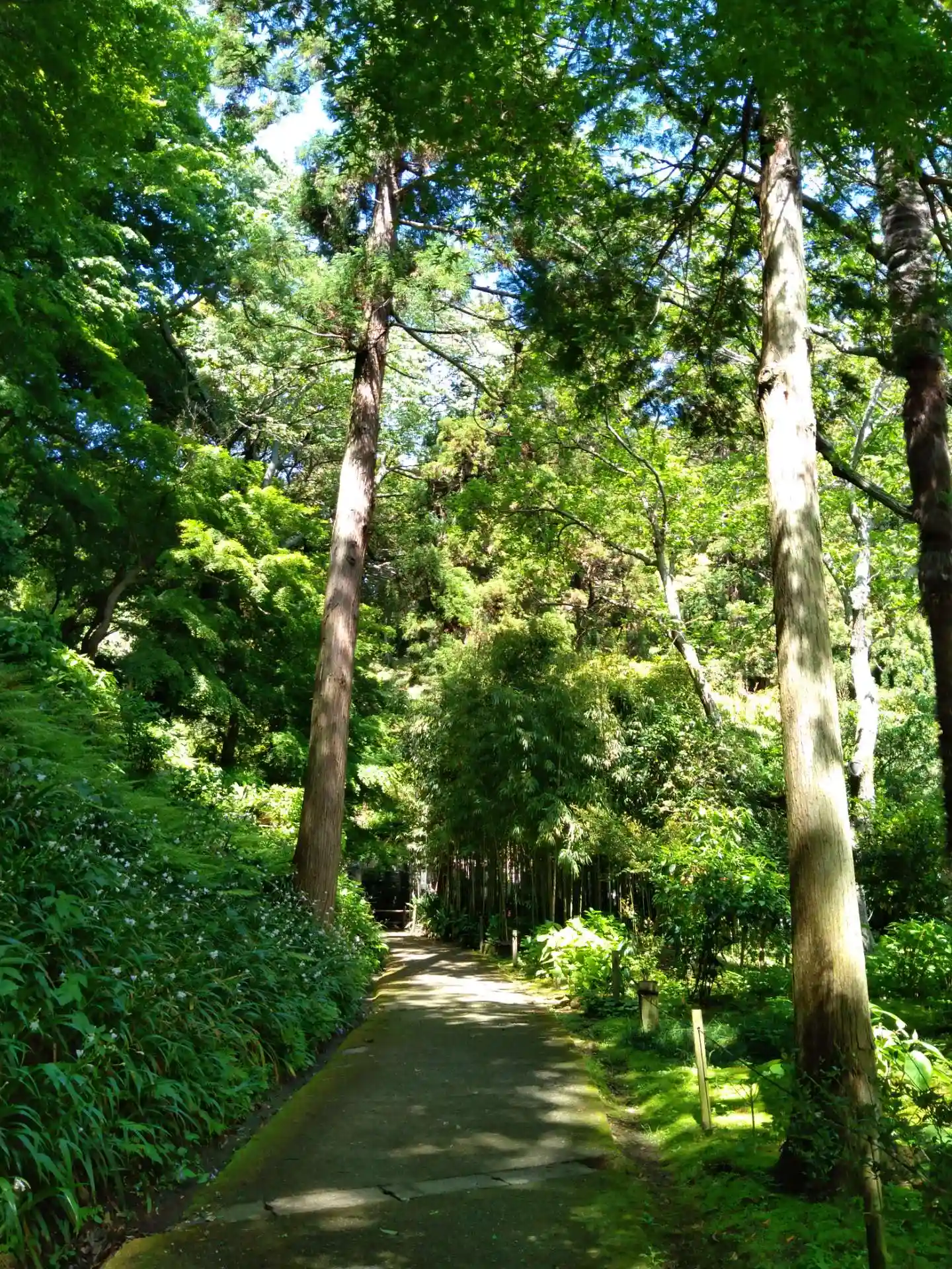 円覚寺から駐車場へ戻りながら浄智寺の寺標を曲がると正面に風情満ち溢れた石階…