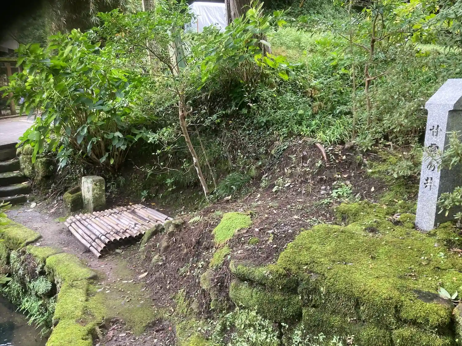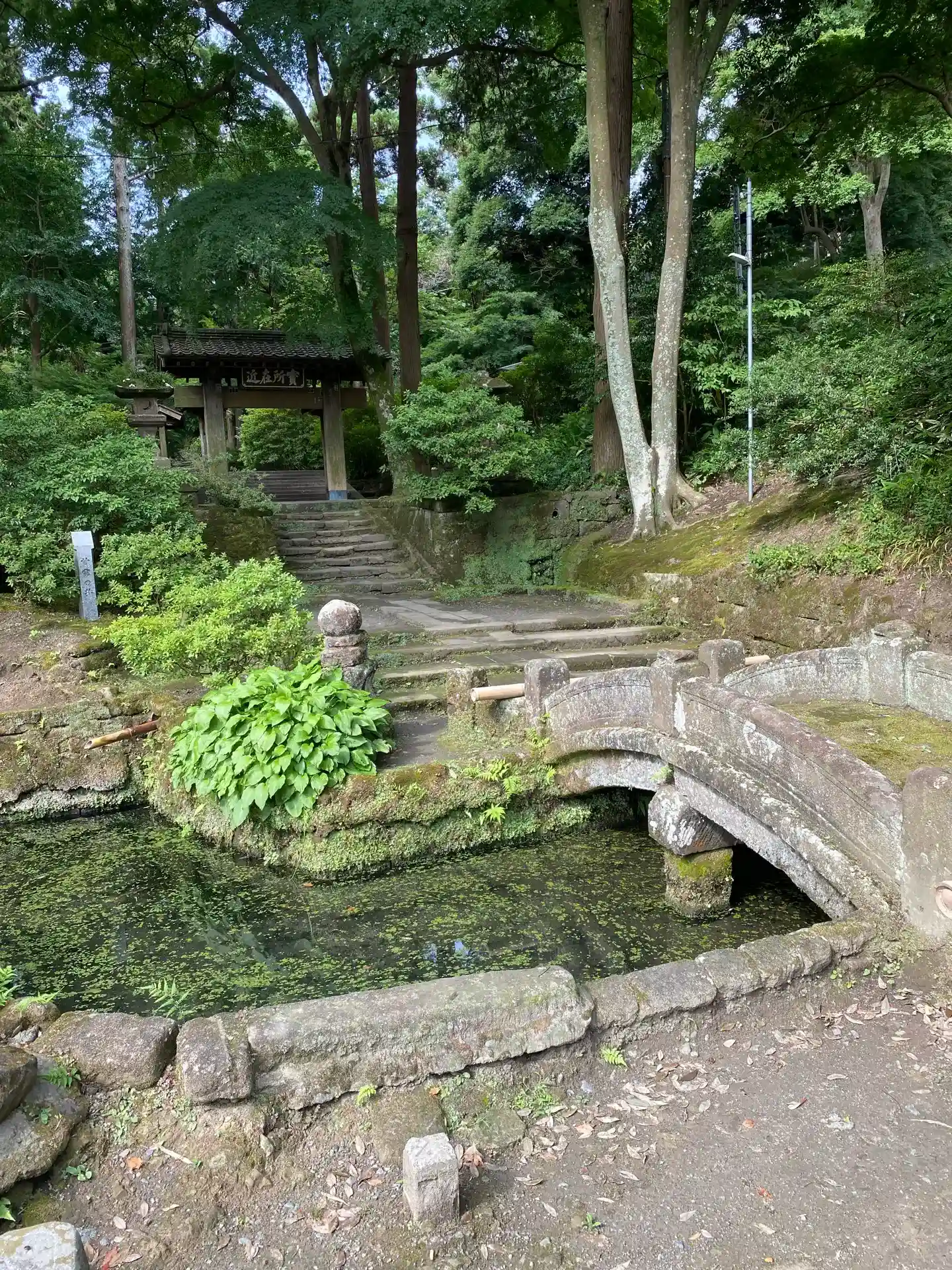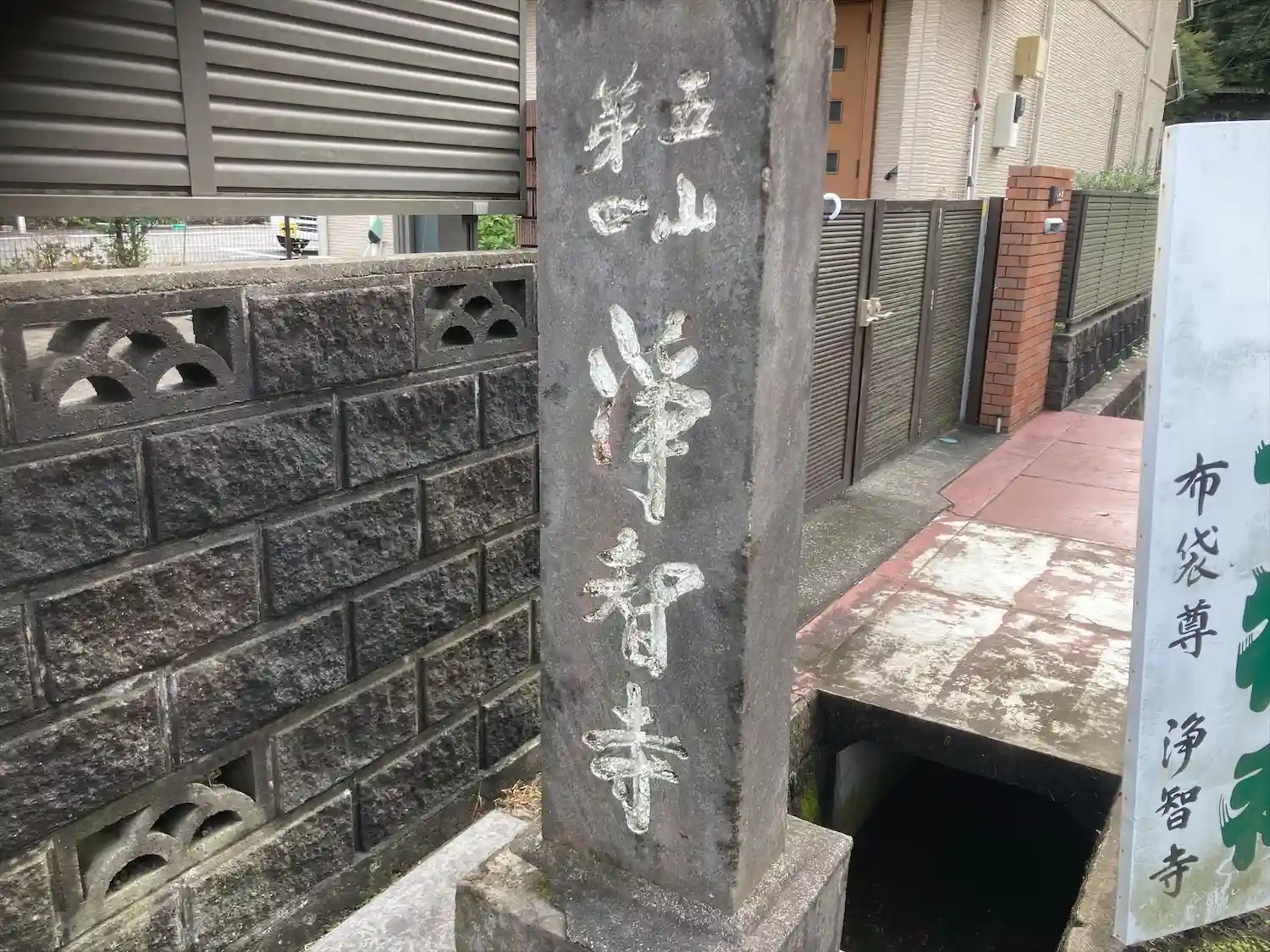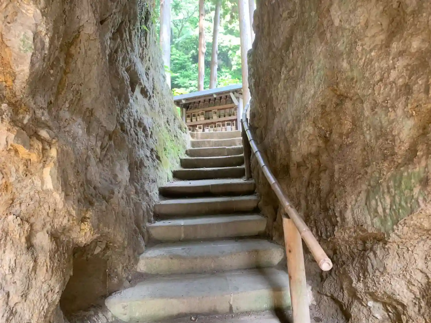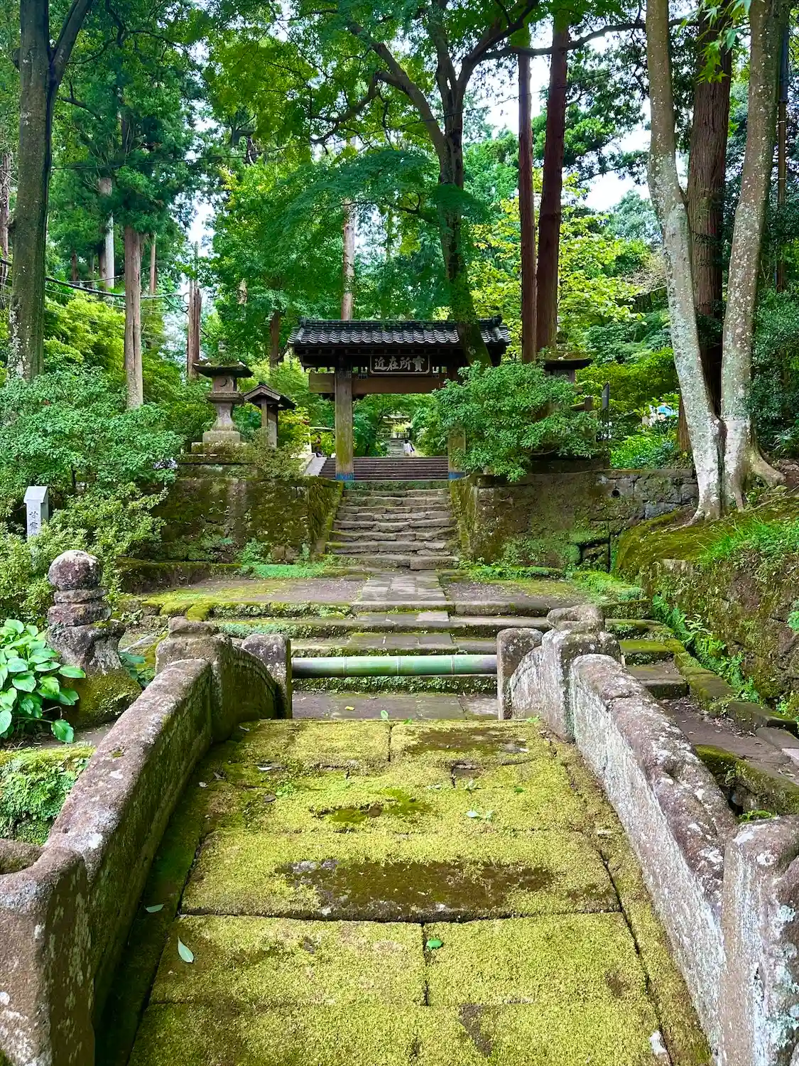 円覚寺から駐車場へ戻りながら浄智寺の寺標を曲がると正面に風情満ち溢れた石階…