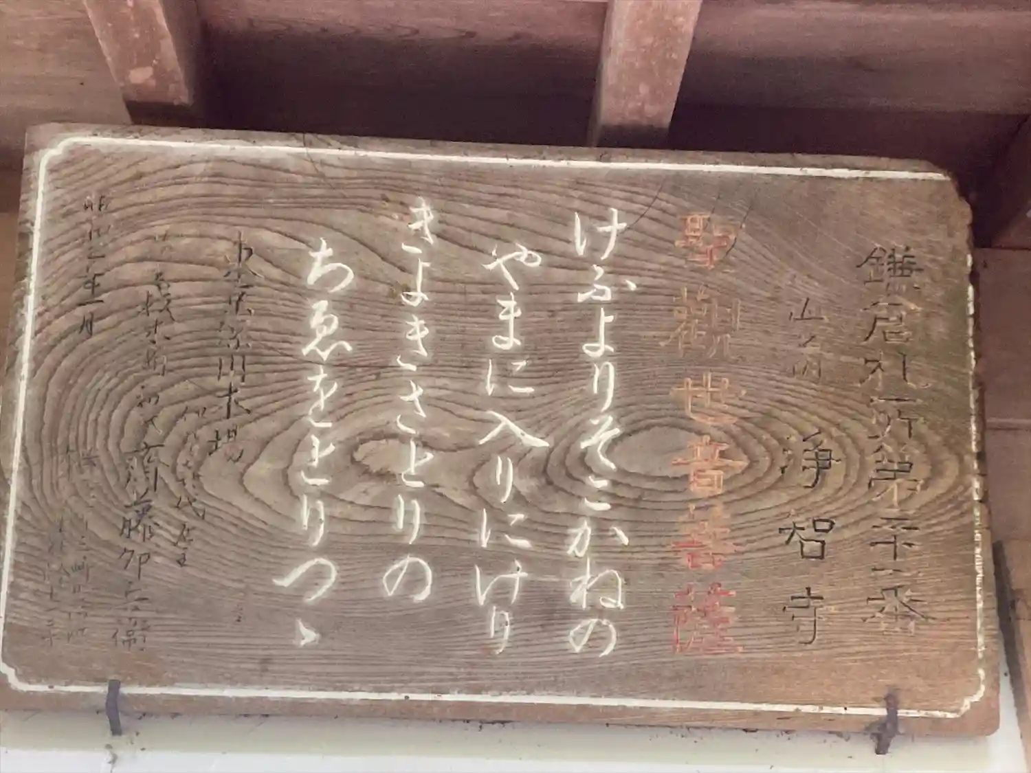 08-1) ” 鎌倉三十三観音 三十一番 木造観音菩薩立像 南北朝時代造 ” の立札