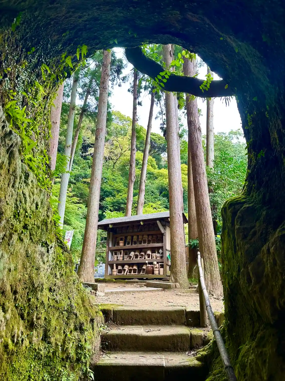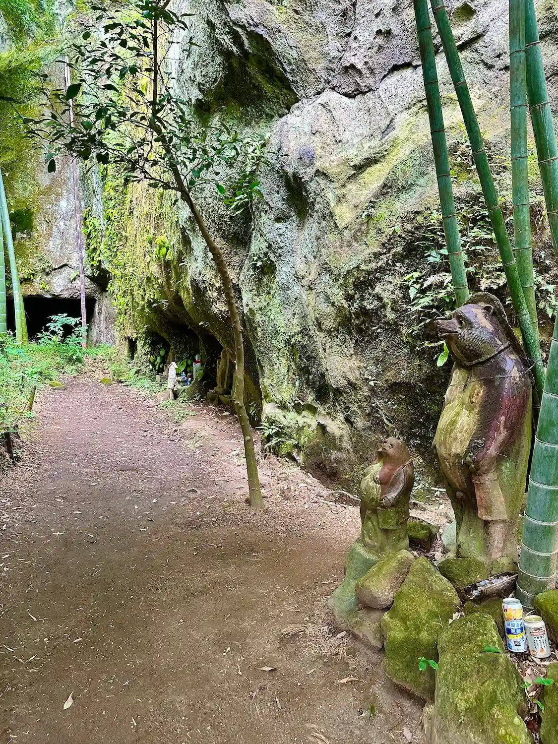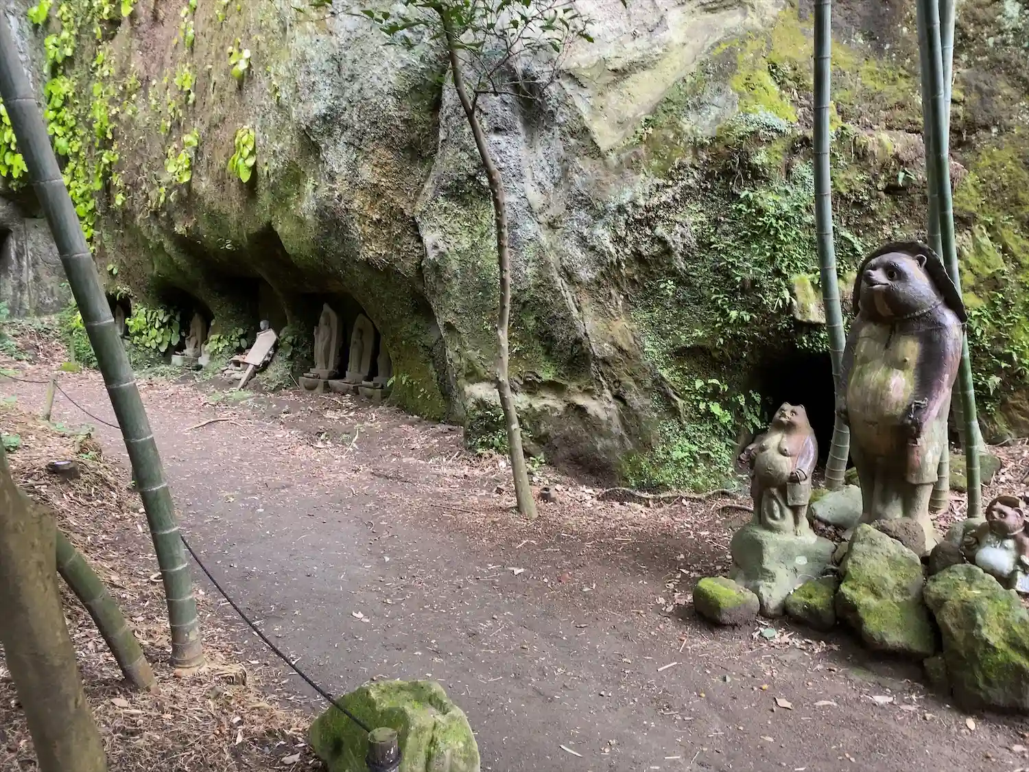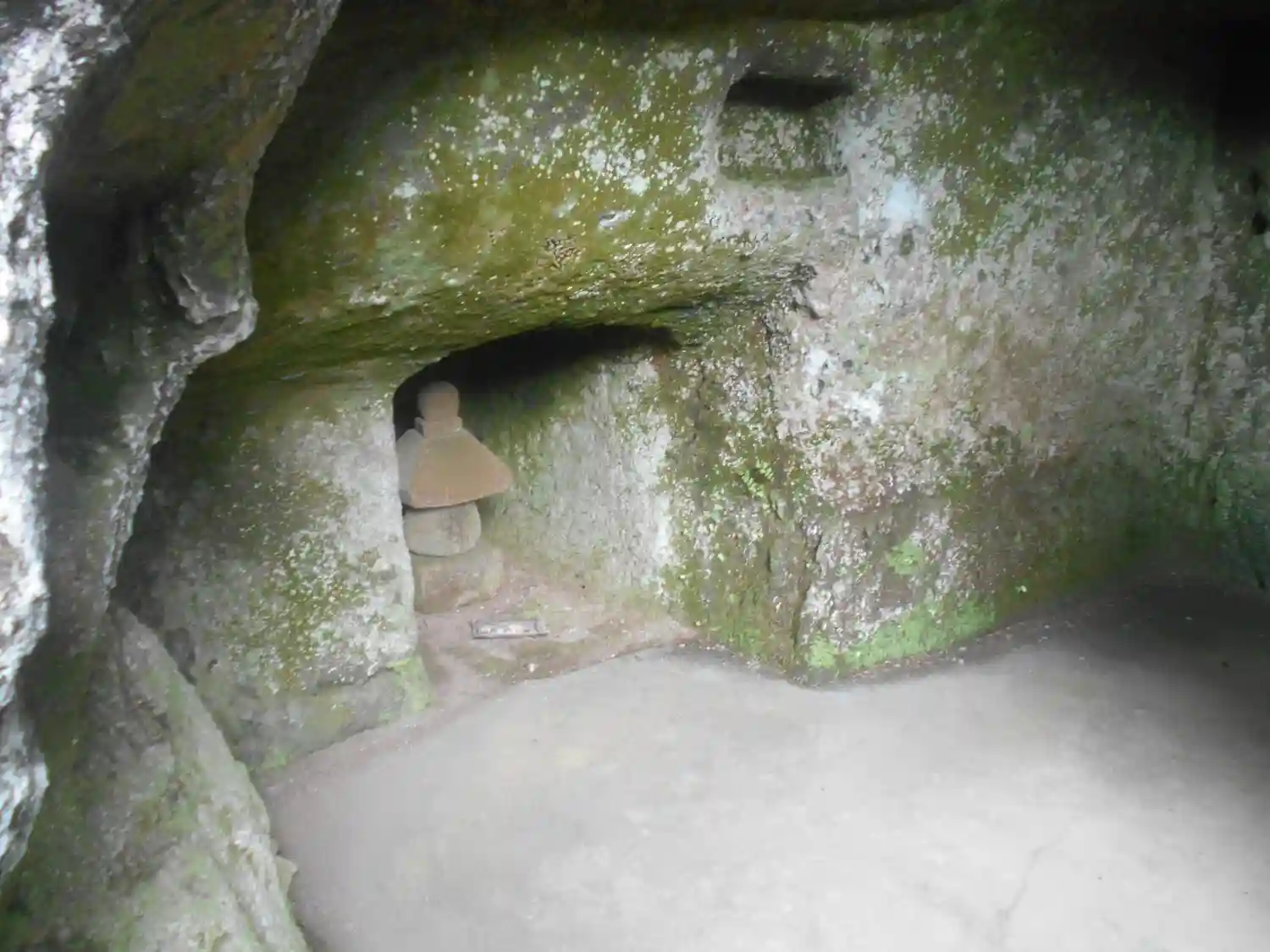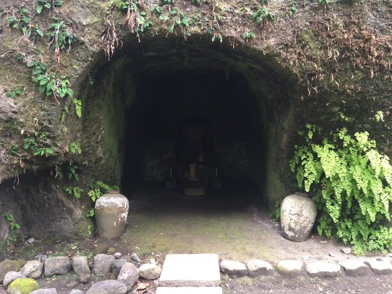 このような横穴が点在。この横穴は「やぐら」といって、住まい、墓所、倉庫として使われたそう