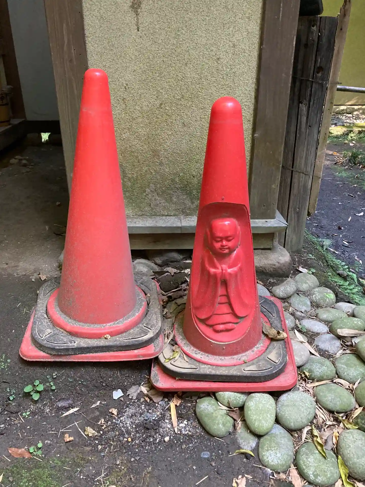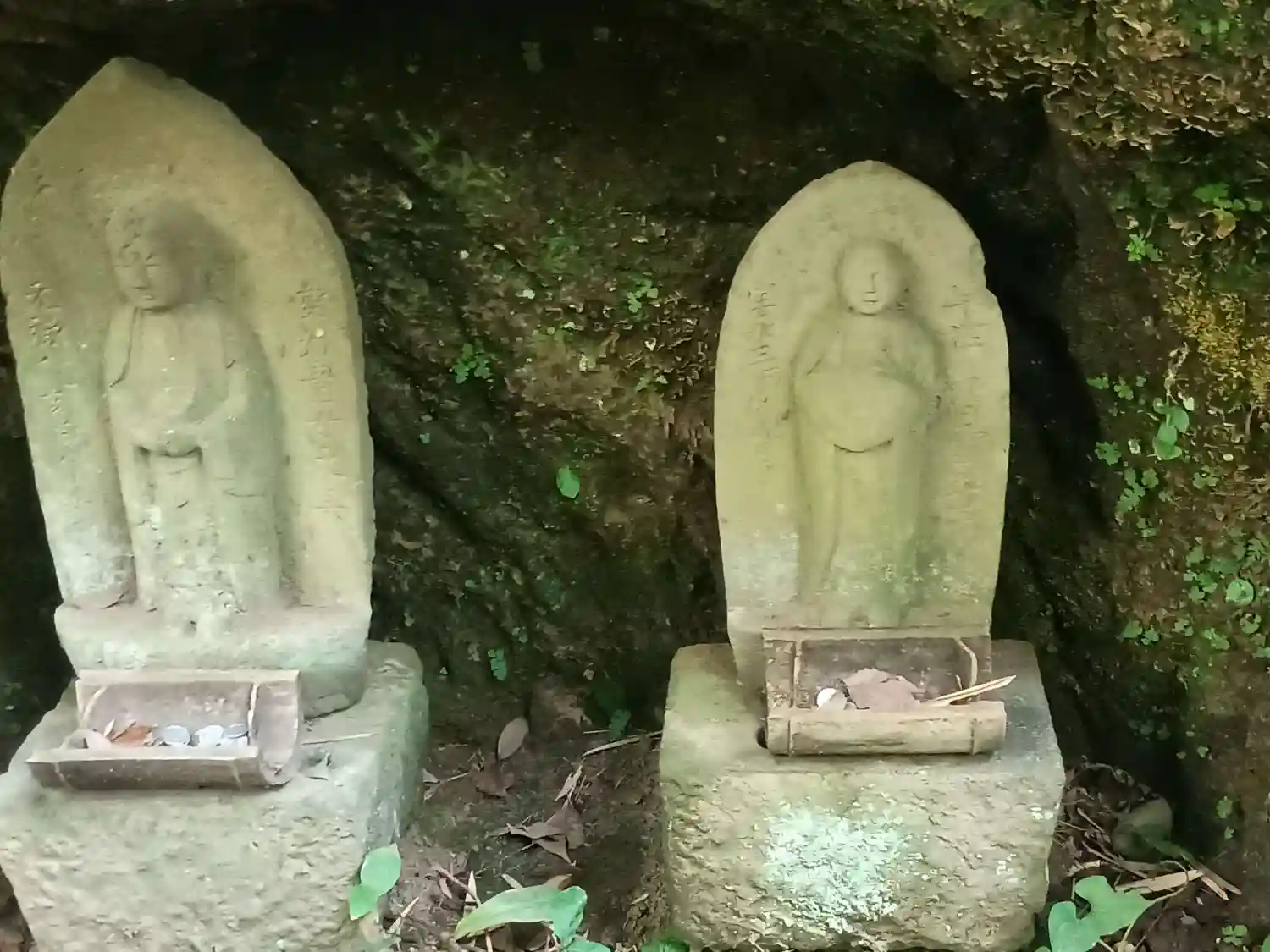 16-1) 左:石祠 と 右: 布袋尊像の ’ やぐら ’