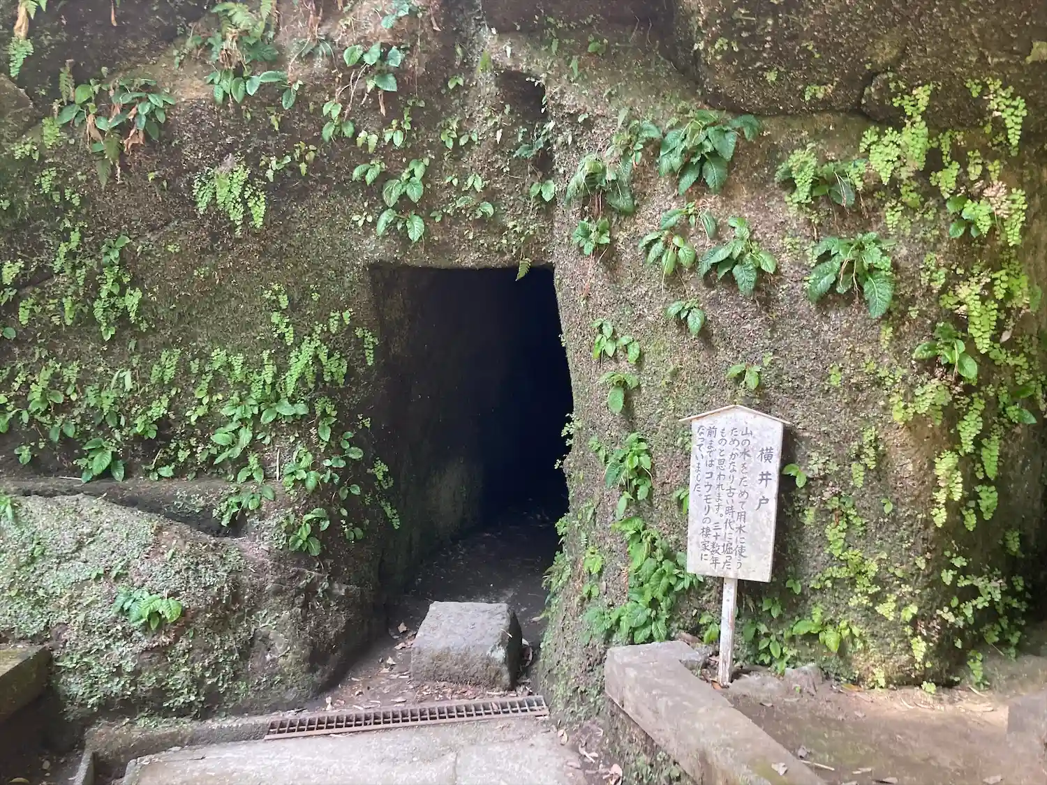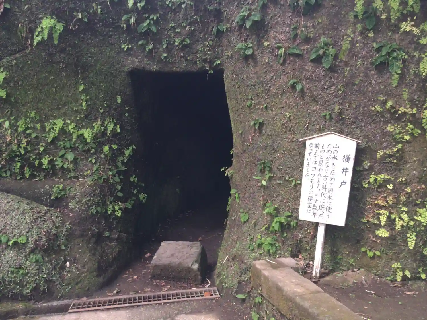 横井戸。覗き込んだところ、真っ暗でした