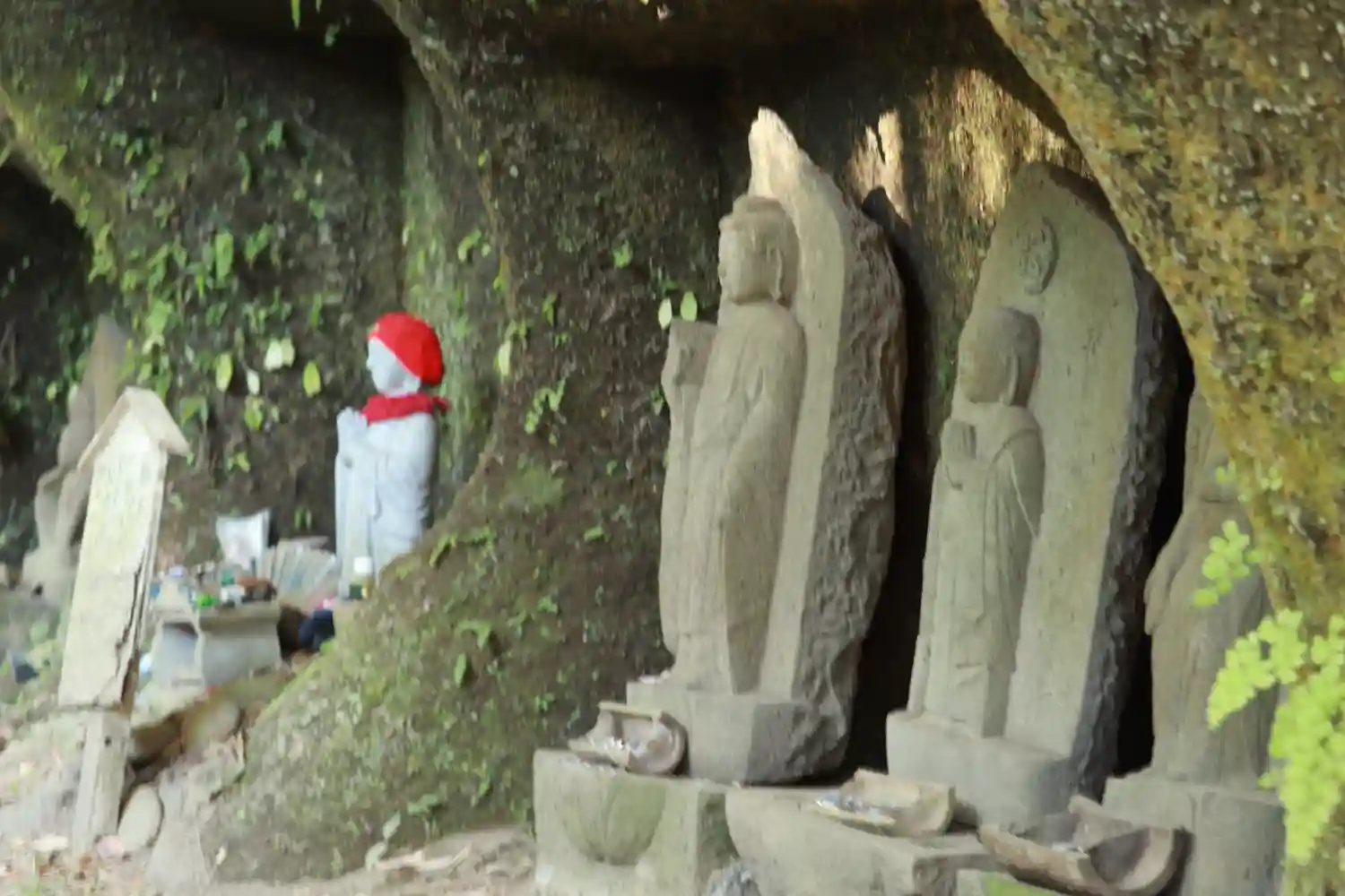 ’ やぐら ’ 内の石塔・舟形後背石仏群の一部をズームアップ。