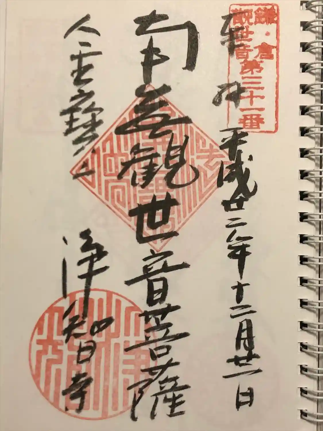 観音様の御朱印は別の御朱印帳にいただきました