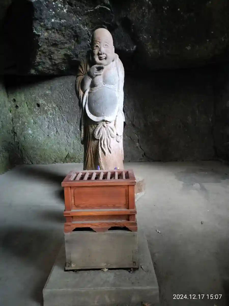 墓地前縁の順路を進んだ先に布袋尊像が鎮座。
