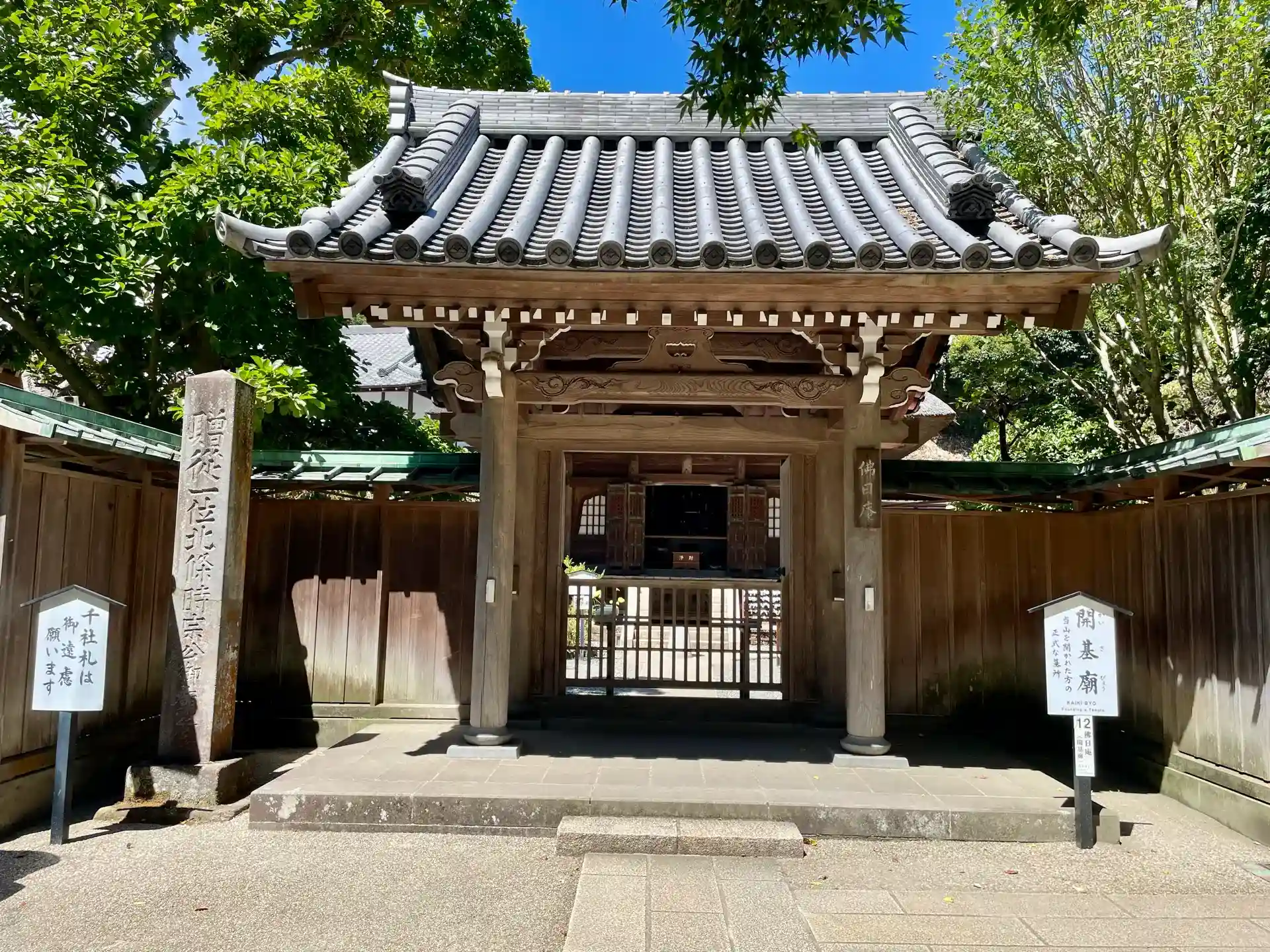 開基廟には僧の姿をした時宗・貞時・高時の木像坐像と時宗が信仰していたという十一面観音像が安置されている。
