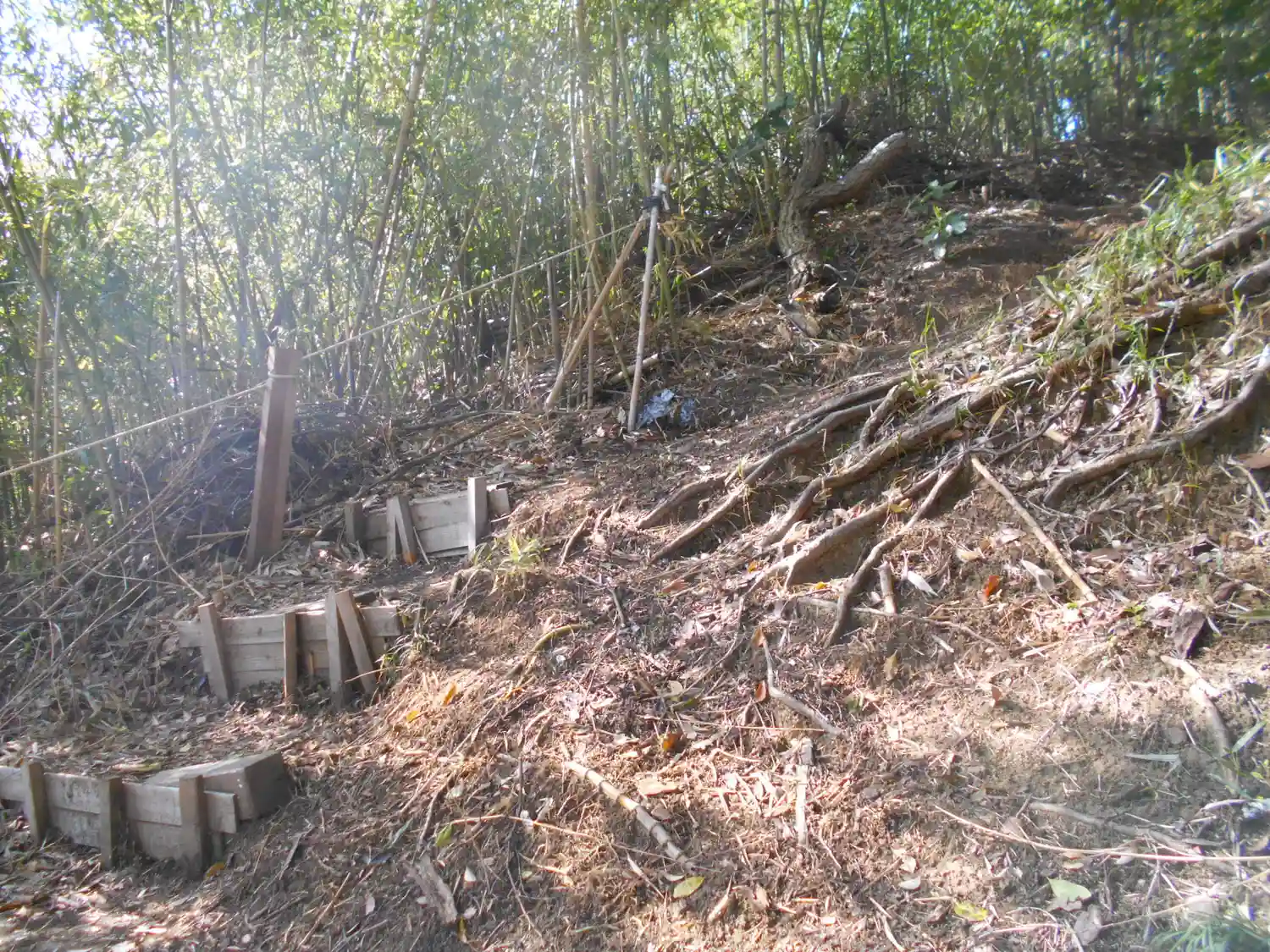 06-1) 社殿に向かって左斜前05-2)の崖沿いから、山中への登り口。