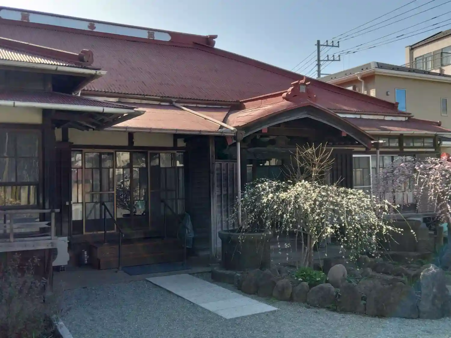 湘南モノレール「富士見町駅」下車徒歩10分。日蓮宗寺院。ご本尊は大曼荼羅掛軸です。