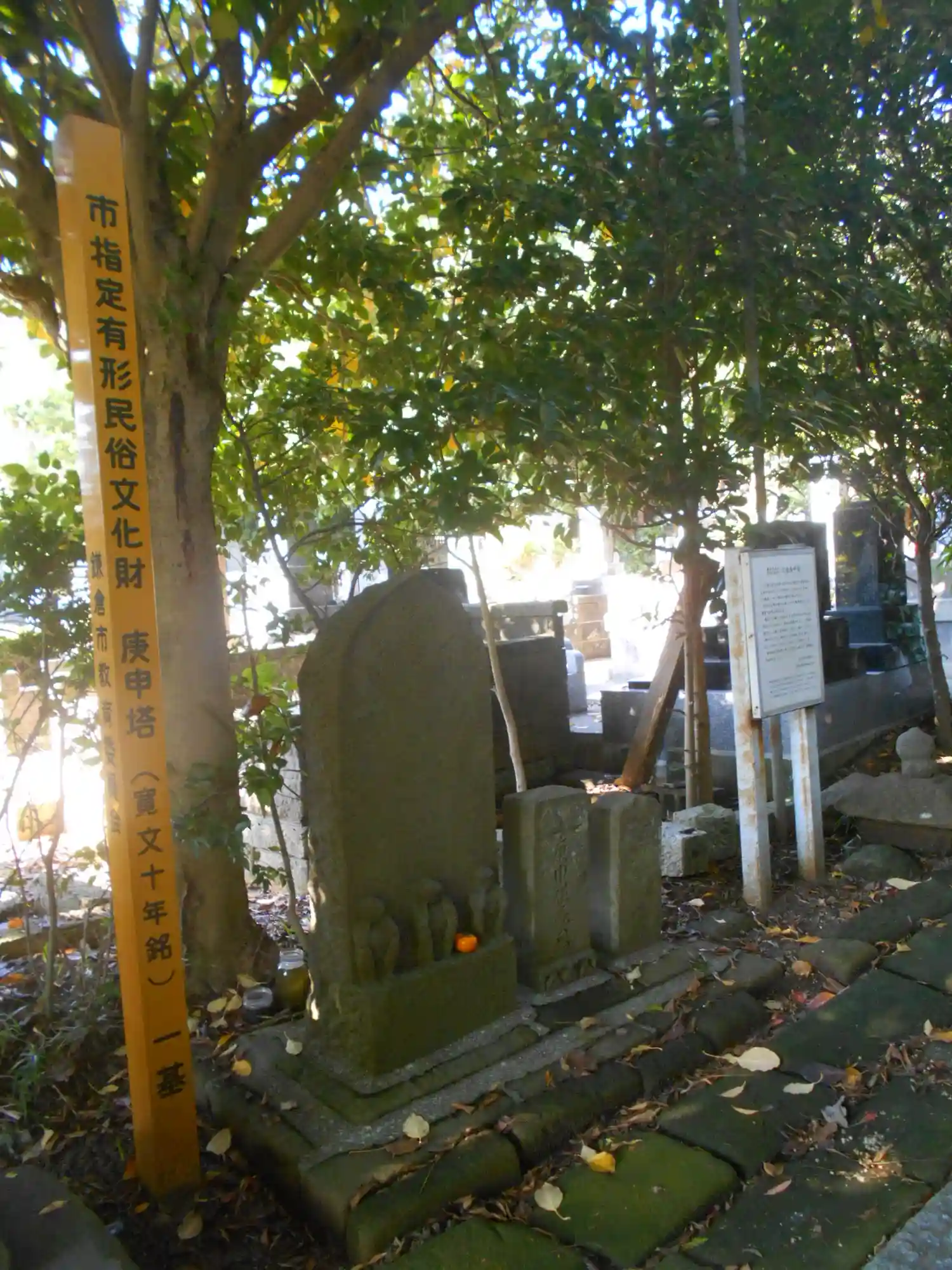 ’ 鎌倉市指定有形民俗資料 石造庚申塔 ’。