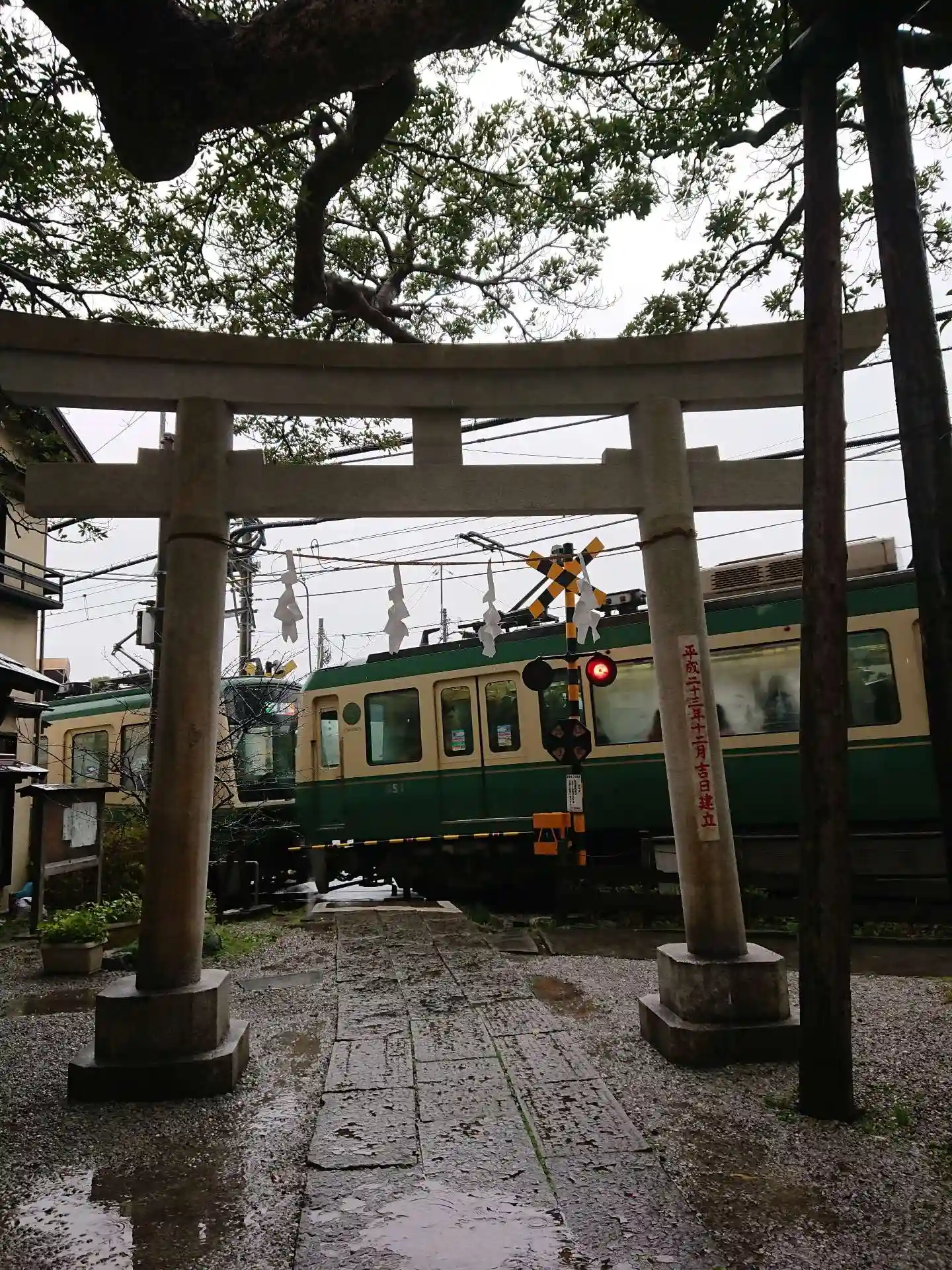 別名「権五郎神社」です。江ノ電が鳥居のすぐわきを走っていくので有名な神社です。御朱印帳がかわいらしいので購入しました。