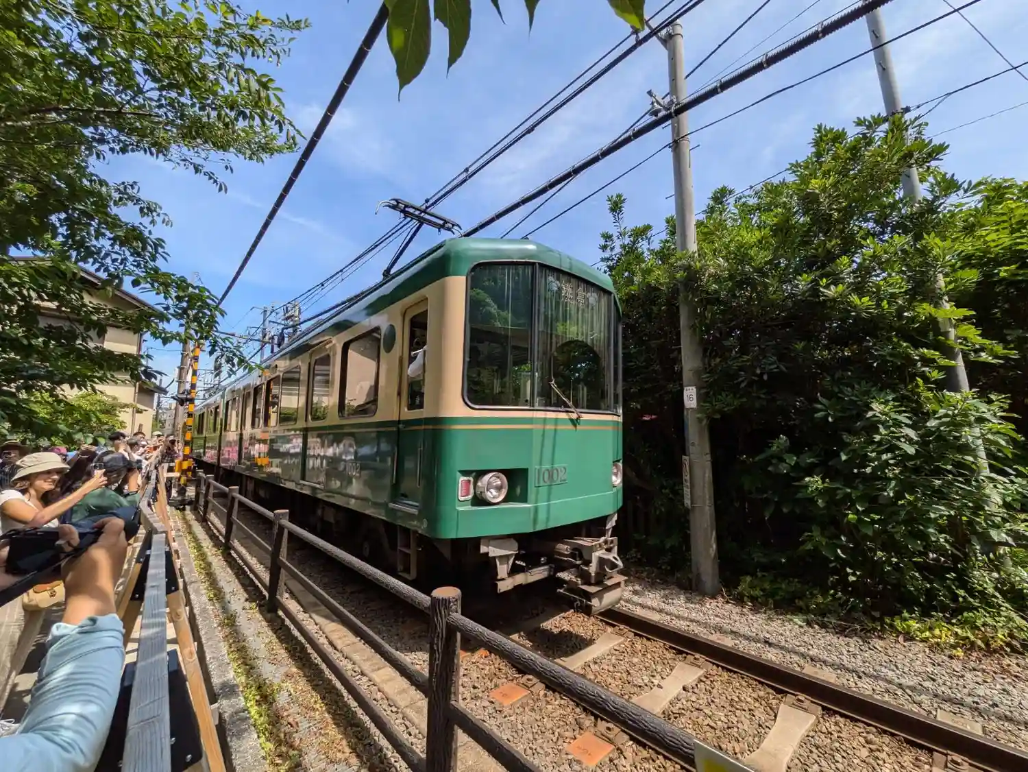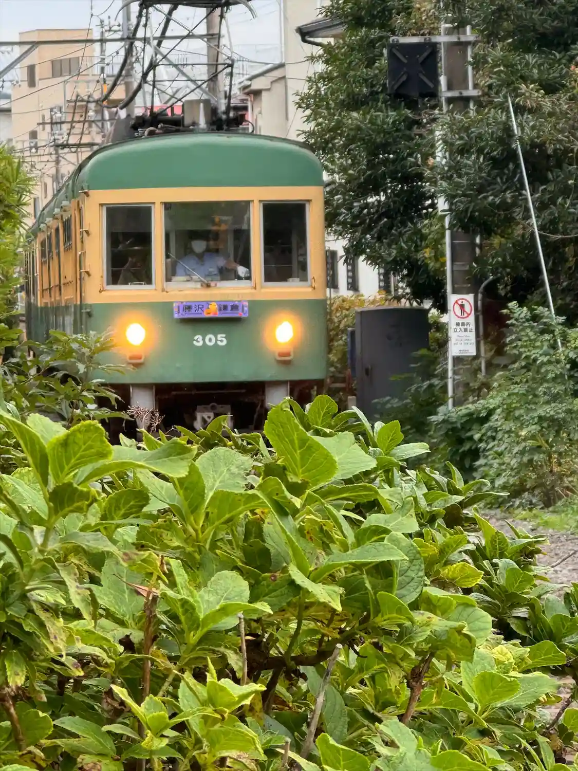 正面左側から鎌倉駅行き電車→タイミング外しましたw→踏切に合わせたつもりだが❗️