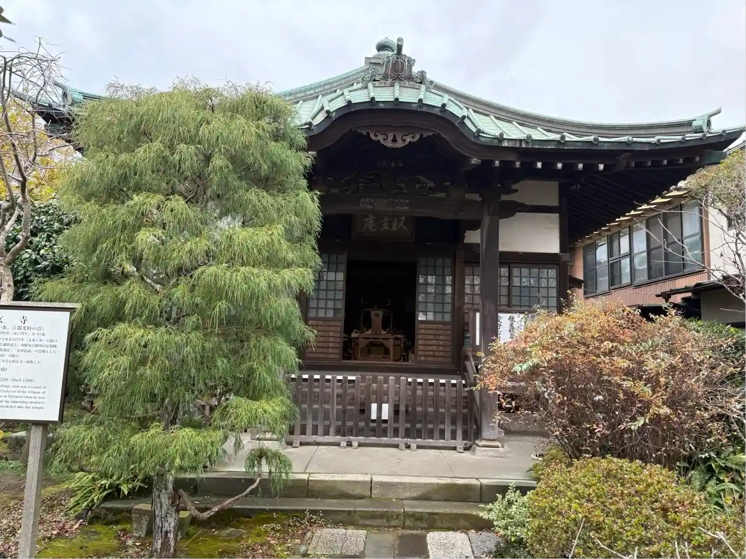 長谷寺近くの日蓮宗寺院。境内にカフェが併設されています。