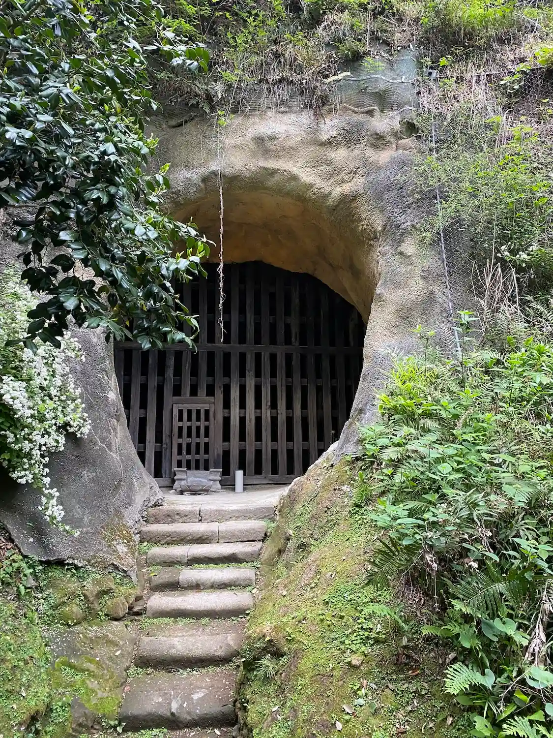 ちょっと奥に入っただけで鳥の鳴き声がしていて、土の牢を見に階段を上ると更に山の中。居心地が良いのでしばらく居たいのですが、山が怖くて(虫や何か出て来そう)おりました。