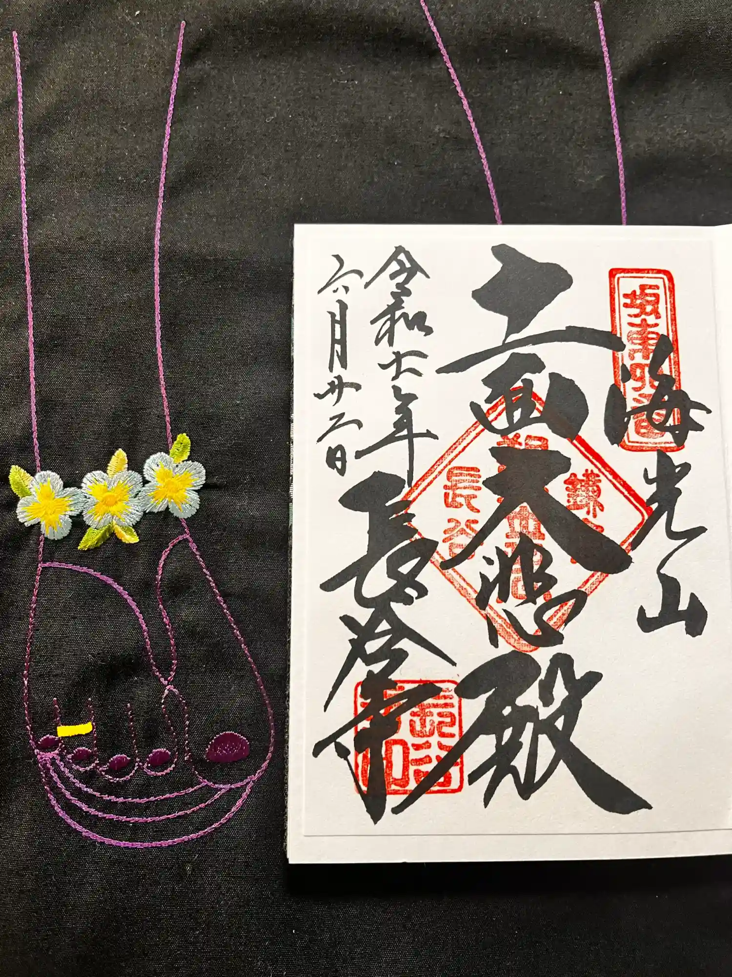 | 御朱印 | 右に海光山、真ん中に十一面大悲殿、左に長谷寺と書かれ、右上に坂東四番、真ん中に鎌倉観世音長谷、左下… | ||